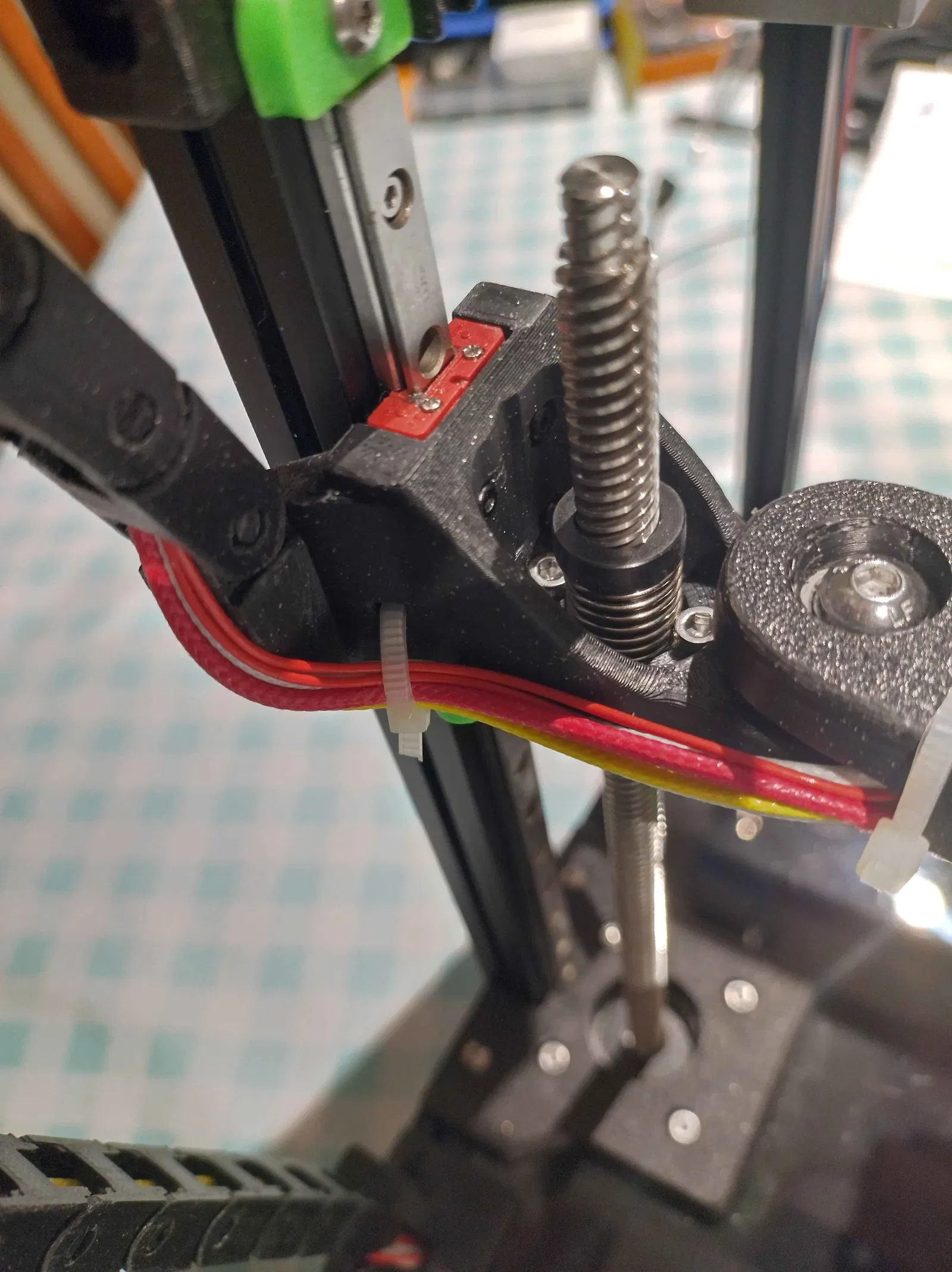 Việc này lại phát sinh vấn đề mới: trục vit me Z phía sau (rear z lead screw) có thể quẹt/đập trúng Cartographer. Mình đã chỉnh lại motor mount + các phần leadscrew carriage để trục Z phía sau lùi ra sau khoảng 5mm. Mình đo thấy cần khoảng 4.6mm - 4.7mm khoảng hở, nên mình làm tròn lên cho dễ.