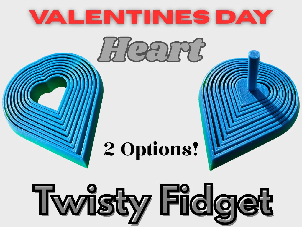 Mẫu fidget dạng xoắn nhiều lớp hình trái tim cho Valentines Day. Có 2 tuỳ chọn khi in: có/không có tay cầm và phần giữa để đặc. Nghịch rất đã tay, tạo âm thanh êm, hợp làm quà tặng Valentine.