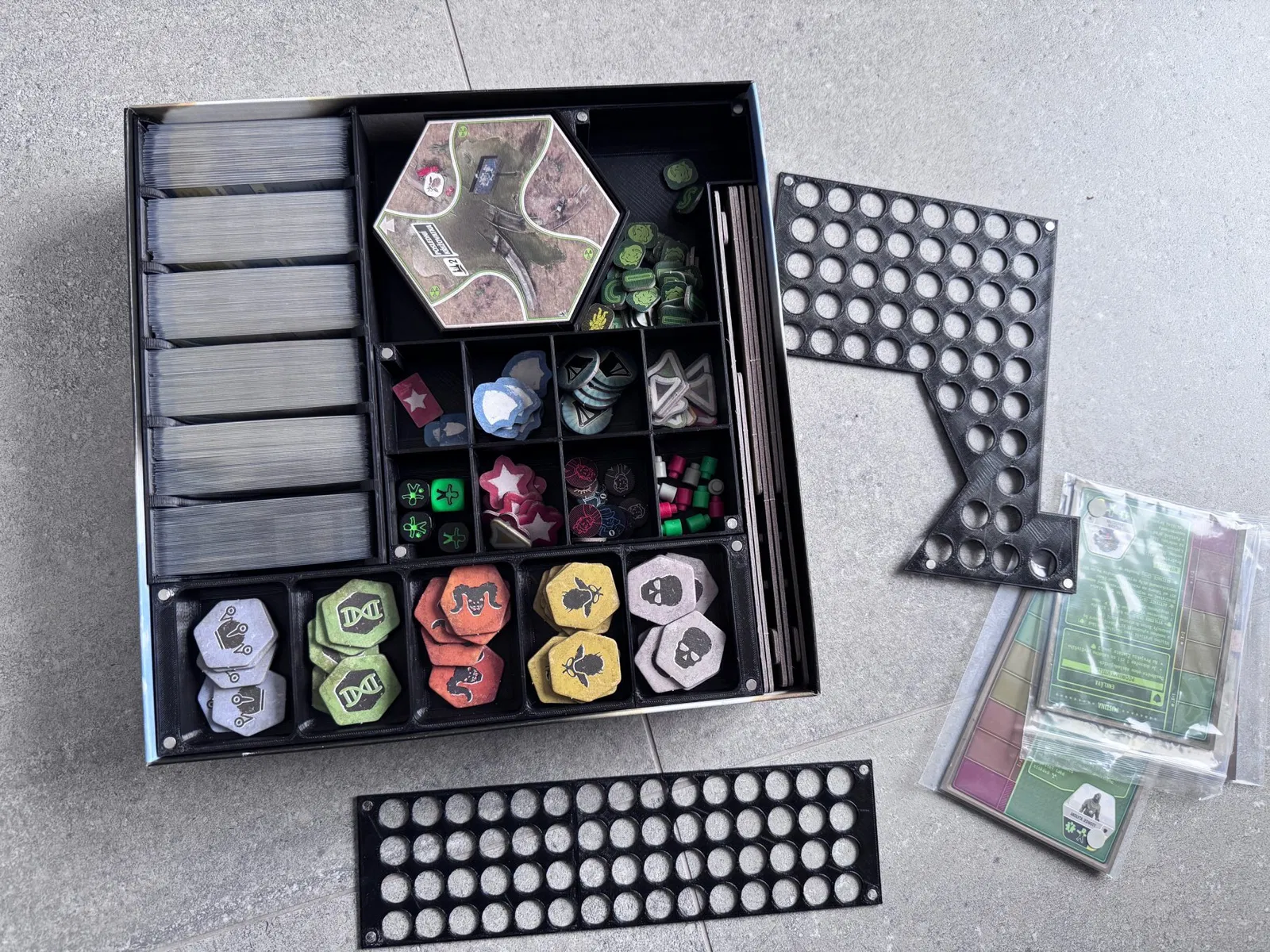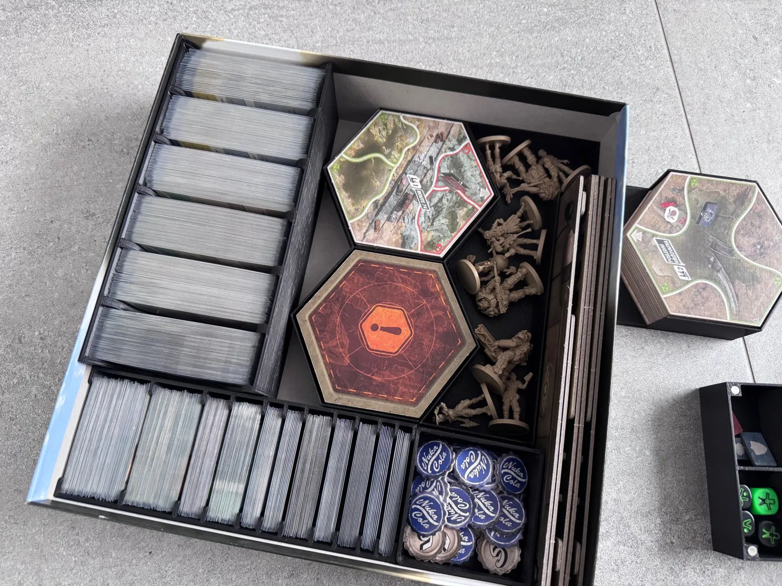 Insert cho board game Fallout và 2 bản mở rộng Atomic Bonds/Atomová pouta và New California/Nová Kalifornie. Gồm 10 phần, hộp caps in 2 cái; cần 18 nam châm 5x1mm cho 2 nắp. Vừa bài đã bọc sleeve.