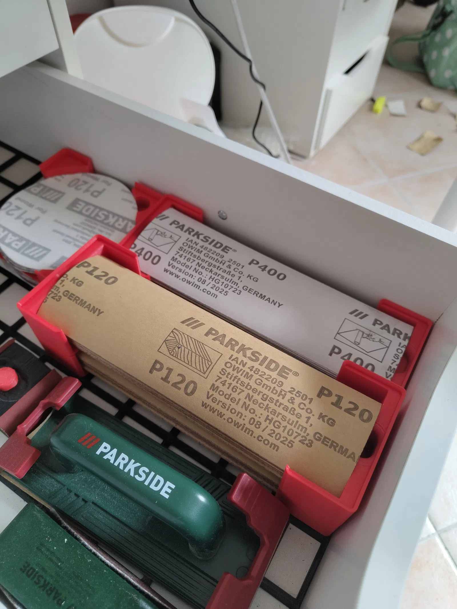 Khay giữ Gridfinity cho giấy nhám chữ nhật Parkside 23x7cm