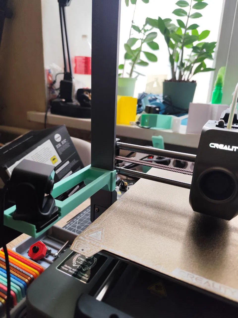Vật liệu: PLA hoặc PETG hoặc vật liệu tương tự. Mình in chi tiết này bằng PLA+ của Creality, màu Jade green.