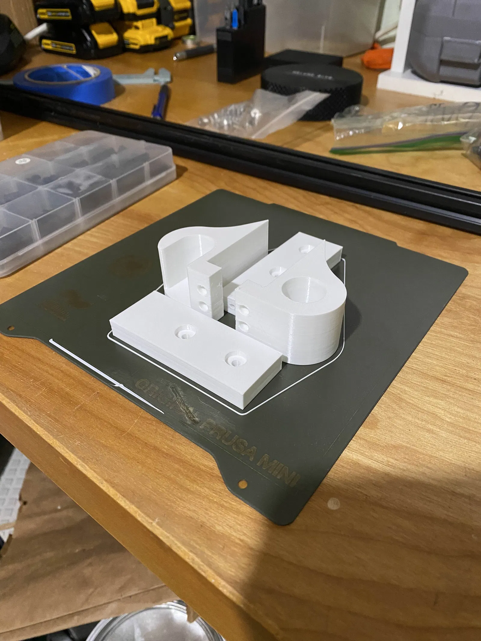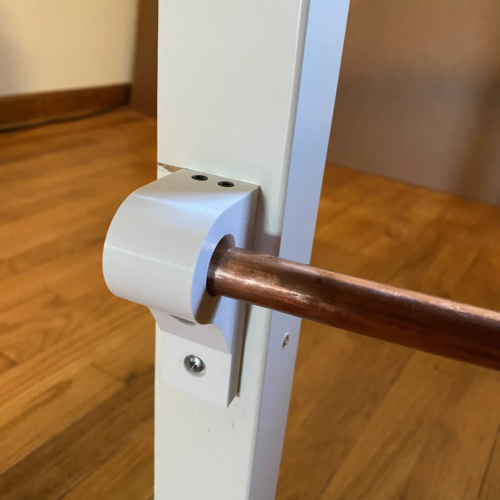 Mình làm cái này sau khi thấy mấy cái flange cơ bản trong tủ quần áo dùng để đỡ thanh treo móc áo. Bản chỉnh sửa này cho phép nhấc cây rod ra khỏi một bên theo đúng kiểu đó.