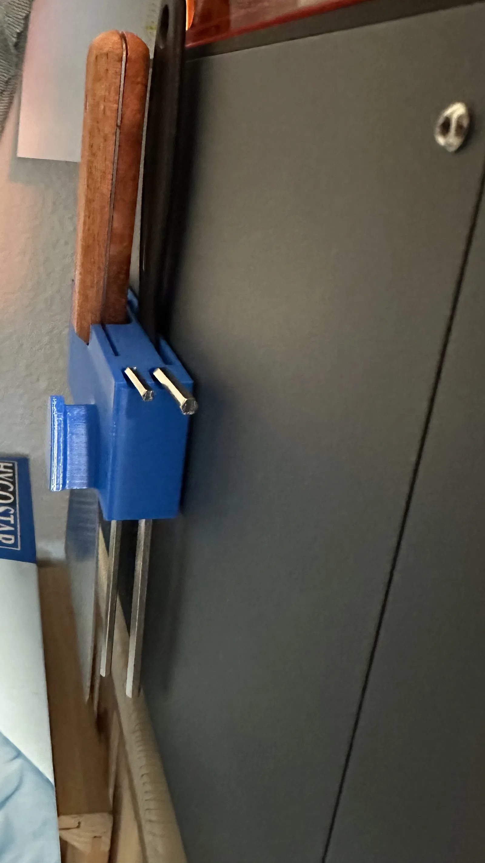 Mẫu giá treo dụng cụ dành cho máy in 3D Creality Halot Mage S. Thiết kế để dán trực tiếp lên bên hông vỏ máy, giúp cất gọn đồ nghề và dễ lấy khi cần.