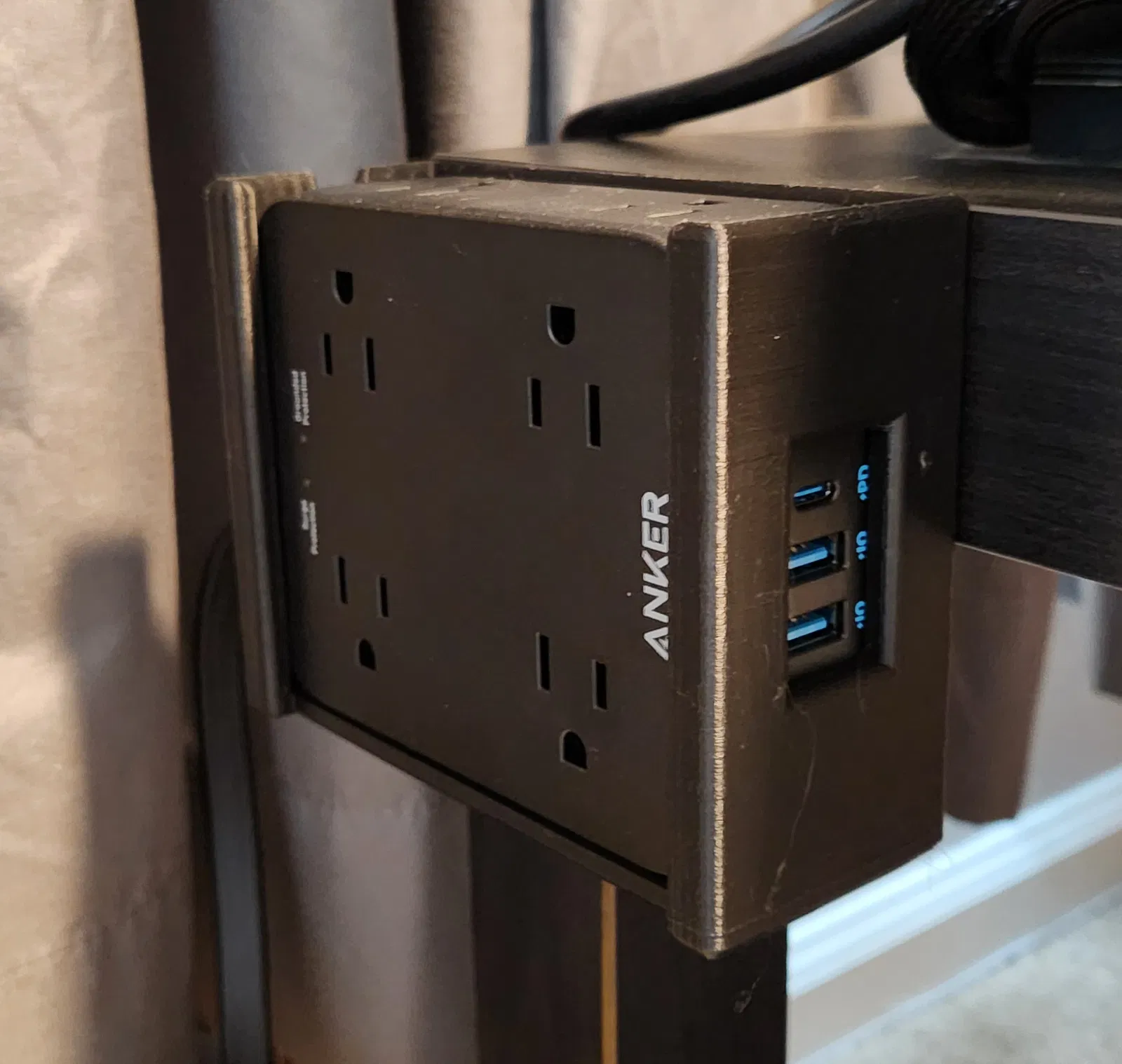 Giá/holder để gắn Anker 341 USB Power Strip lên mọi bề mặt phẳng như bàn, tường hay kệ. In PLA dễ dàng, lỗ bắt vít phù hợp vít drywall #6; có bản normal và mirror cho hướng dây nguồn.