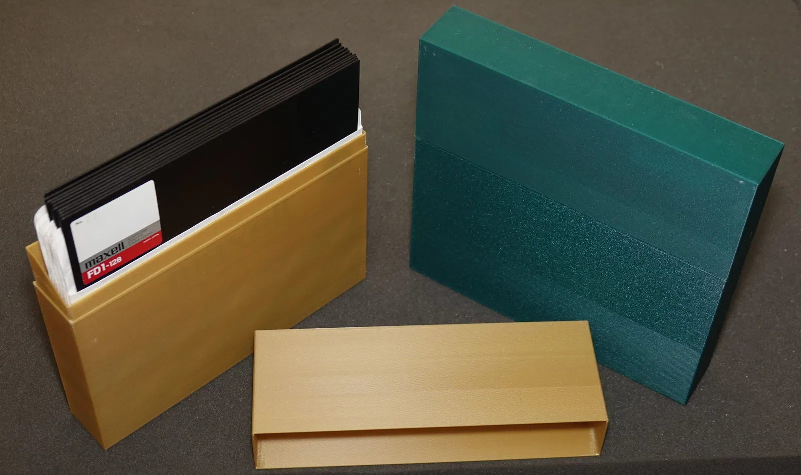 Mẫu hộp đơn giản dùng để cất và bảo quản các đĩa mềm (diskette) 8 inch đời cũ. Phù hợp làm phụ kiện cho bộ sưu tập máy tính vintage hoặc lưu trữ gọn gàng.