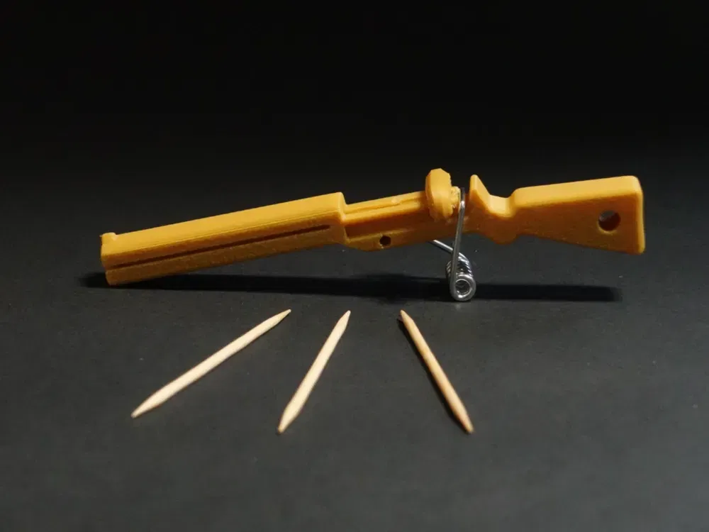 Mẫu bệ phóng tăm đơn giản dùng lò xo kẹp quần áo tiêu chuẩn, ít chi tiết nên in nhanh và lắp ráp lẹ. Lưu ý an toàn: lực bắn có thể gây chấn thương, tránh chĩa vào mặt và mắt. Dùng cho tăm gỗ thường.