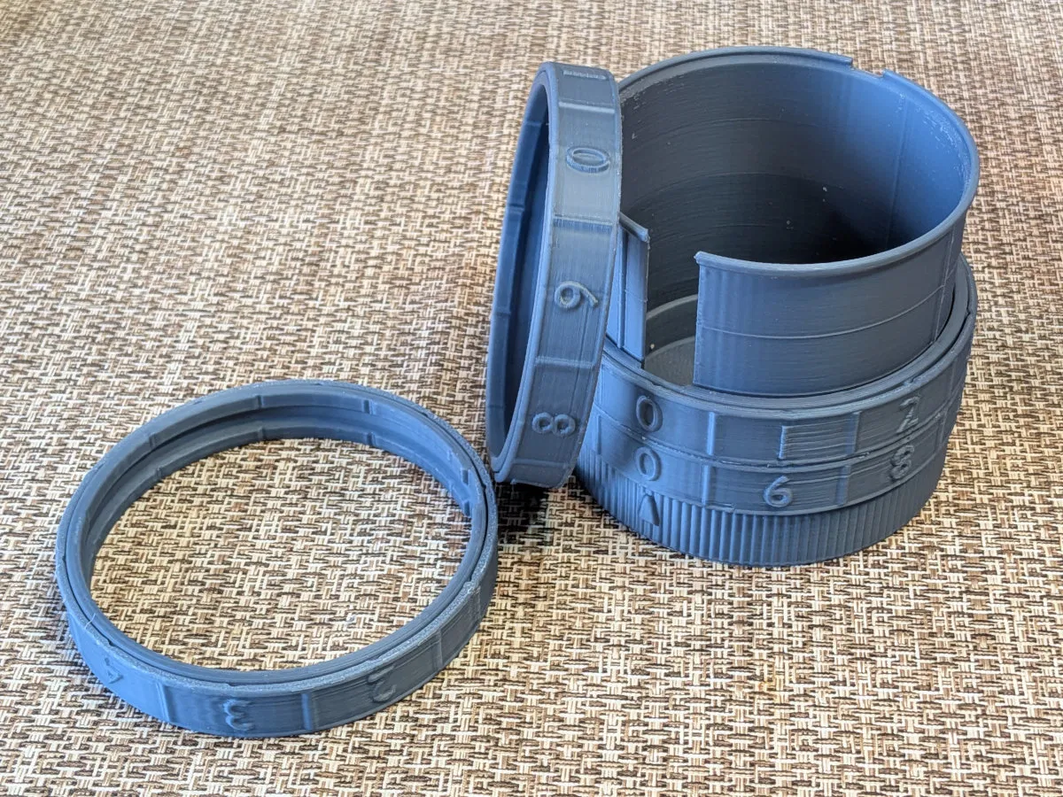 3. Đặt mã: Trượt các vòng bạn chọn vào lõi. Canh mã bí mật của bạn trùng với các “cửa” của vòng trong và các dấu chỉ thị ở phần đế. Ép lắp vòng chặn (retainer ring) để giữ cố định (nếu bạn không muốn đổi mã nữa thì có thể dán keo cố định vòng chặn).