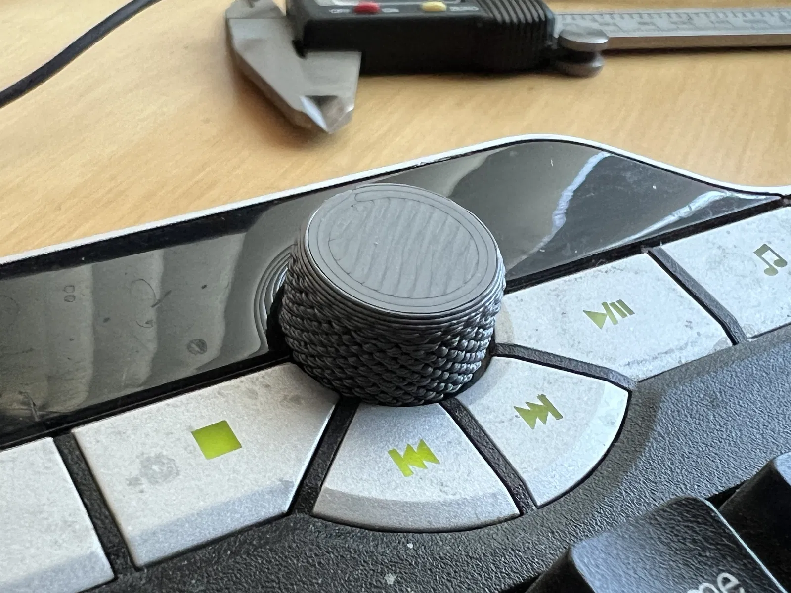 Mình mê cái bàn phím Dell SK-8135 vì nó có núm vặn chỉnh âm lượng vật lý. Mình hay kiếm được mấy cái giá rẻ khi bị mất núm. Đây là phiên bản núm thay thế mình làm. Có thể cũng sẽ vừa với một số bàn phím multimedia khác; nếu không vừa thì mình có kèm file model Fusion 360 để bạn chỉnh sửa cho dễ.