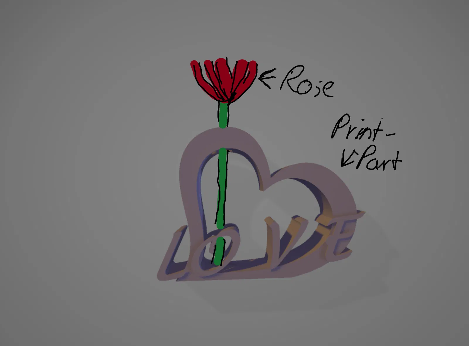 In Rosenhalter: in chi tiết, cắm một bông rose vô là xong. Phù hợp làm quà Valentine: nhỏ gọn, dễ in 3D, trưng bày hoa hồng đẹp mắt trong không khí love và heart.