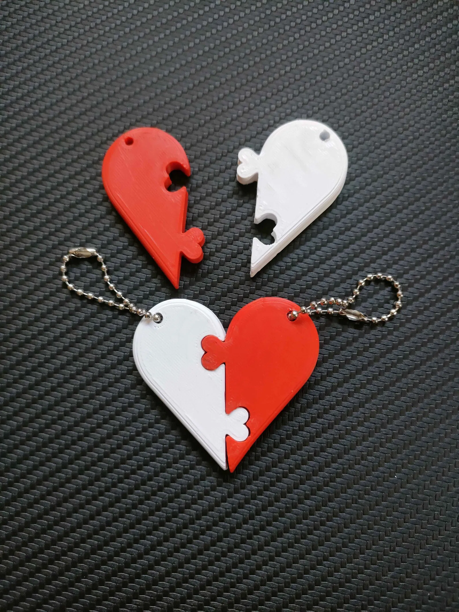Móc khóa Valentine đơn giản gồm 2 nửa rời: mỗi nửa dùng riêng được, ghép lại thành một trái tim hoàn chỉnh. In dễ, không cần supports, rất hợp làm quà cho couple, bạn bè hoặc người đặc biệt.