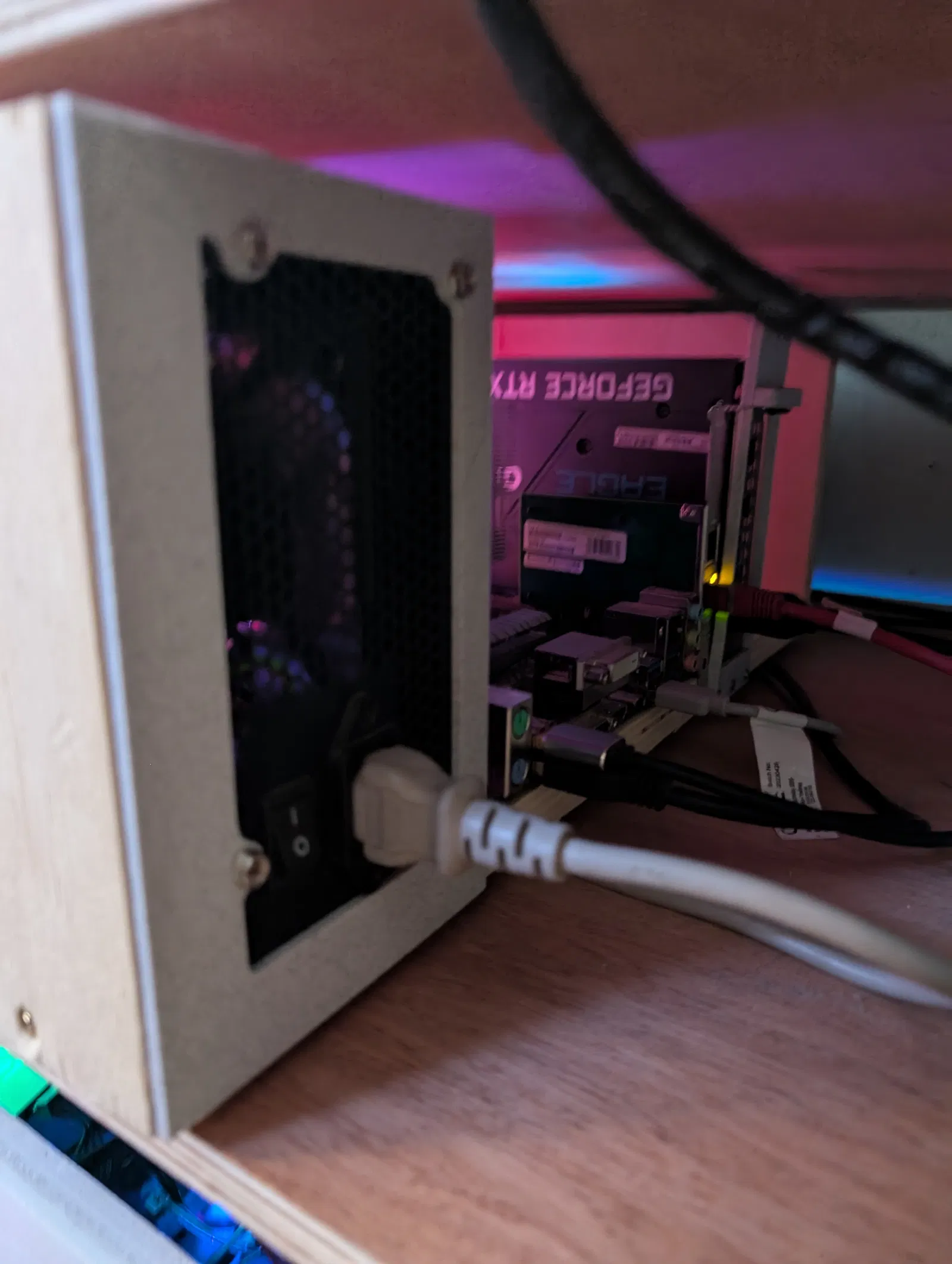 Tấm plate in 3D để bắt vào pattern lỗ chuẩn ATX PSU, rồi bắt tiếp lên case/khung khác nhằm cố định bộ nguồn. Thiết kế bằng FreeCAD, tuỳ biến dễ qua Spreadsheet; có sẵn 3MF mặc định theo bề dày gỗ.