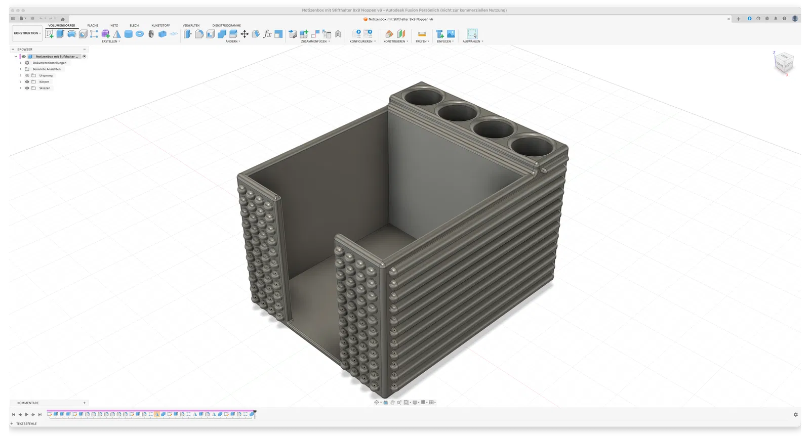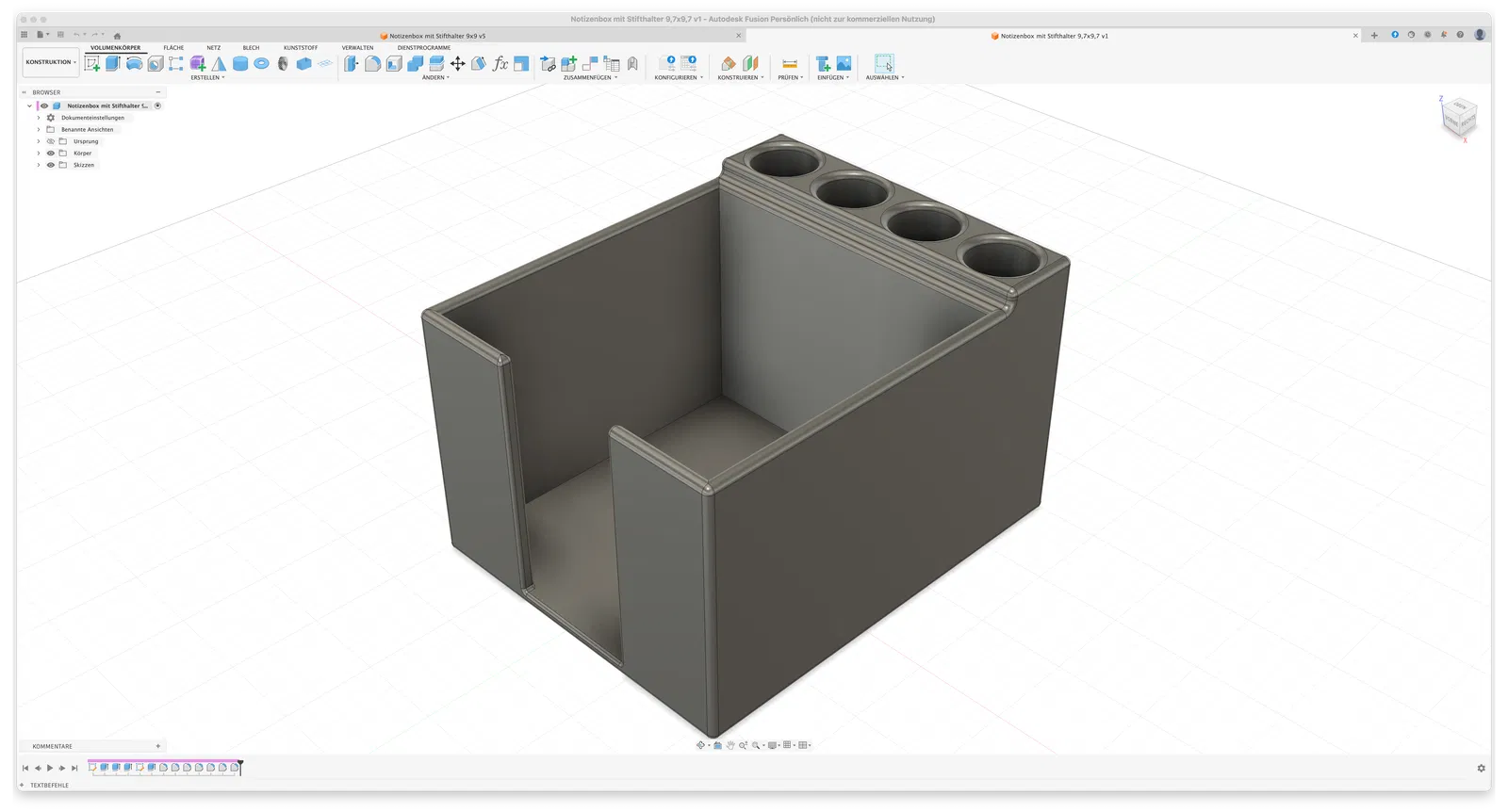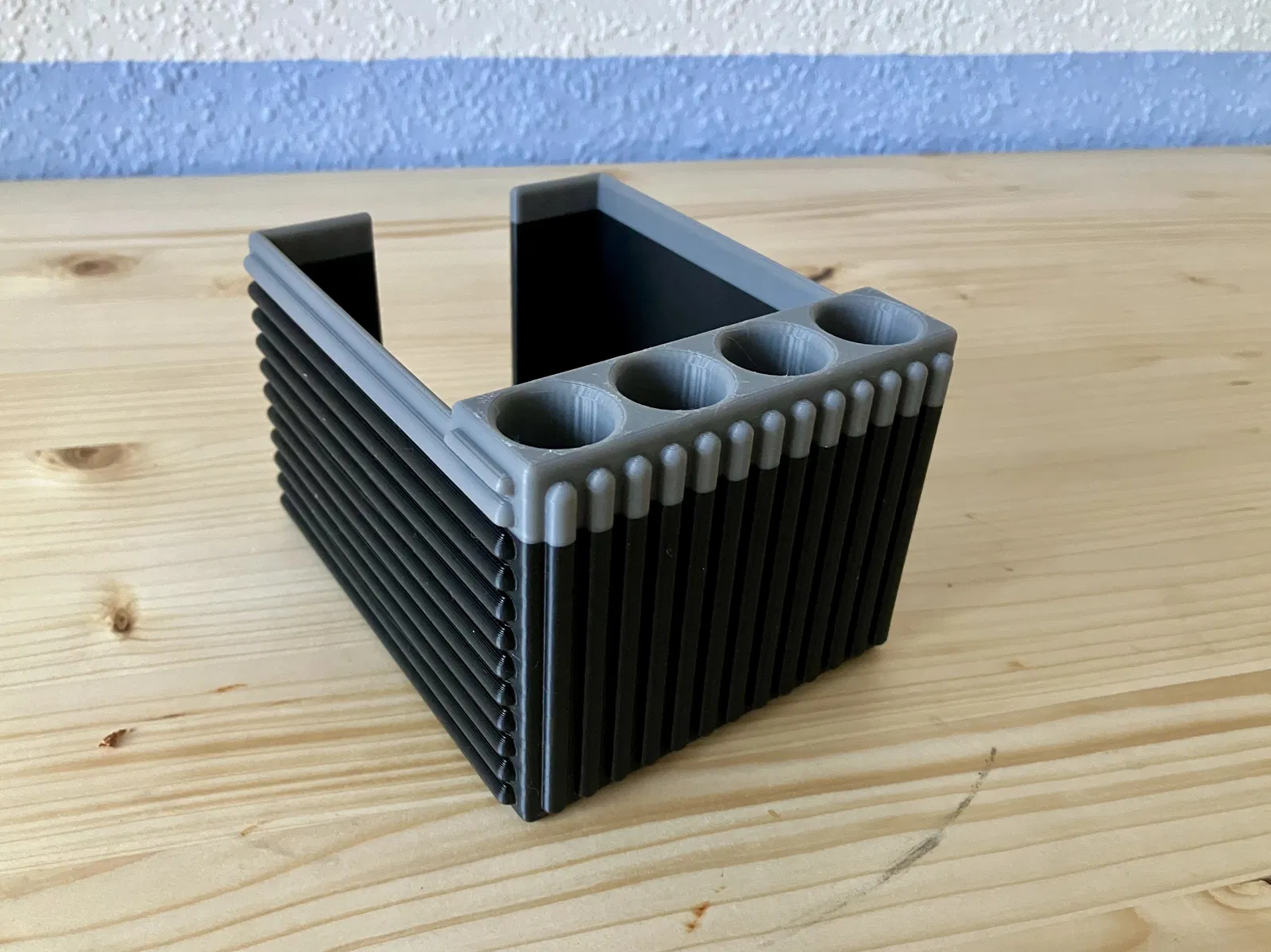 Hộp giấy note tiện dụng kèm 4 ống giữ bút (Ø20 mm), chứa được cả bút to. Hỗ trợ giấy 97x97 mm và có thêm profile cho chuẩn 90x90 mm. Có bản update “bọc giáp” bảo vệ giấy tốt hơn (90x90 mm).