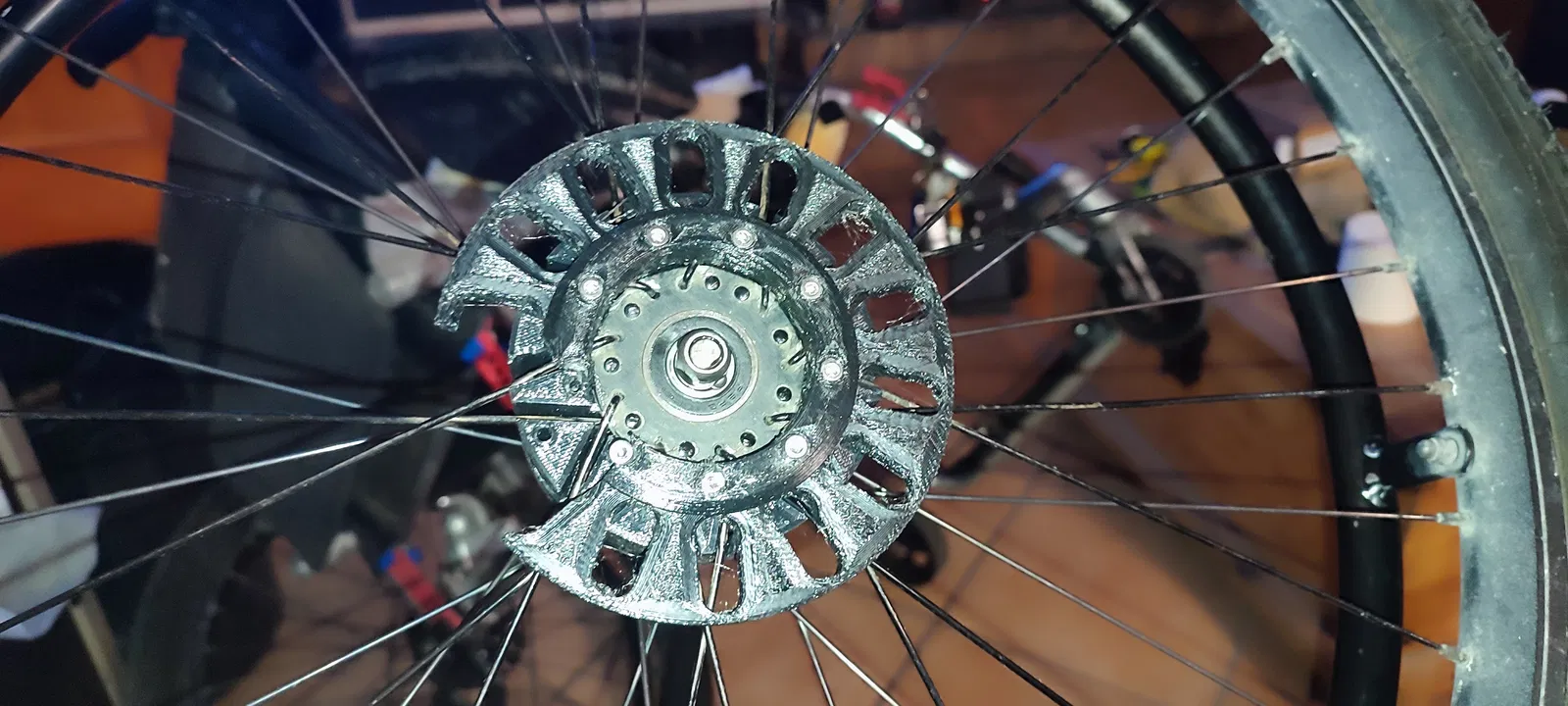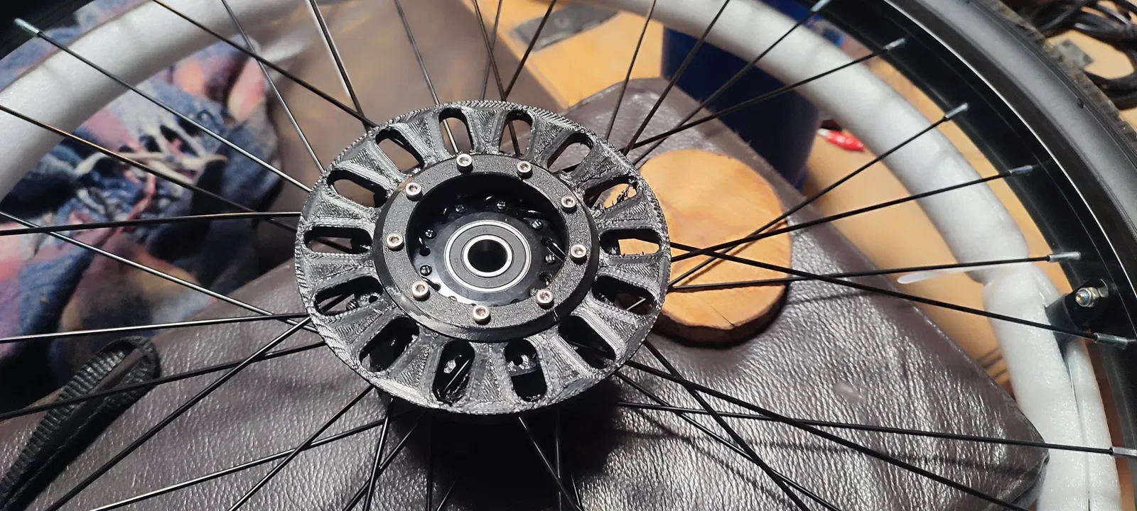 Thiết kế này vẫn đang phát triển. Dùng đồ gá/mount zin thì hay bị gãy, nên mình quyết định làm cái gì đó chạy được trước. Mình dùng TPU Rings: rất bền nhưng hơi mềm (flex nhiều). Khi bị kẹp vào hub thì lúc chịu lực lớn nó sẽ trượt/di chuyển, nhờ vậy không làm bể hub hay làm cong bulong M3, v.v.