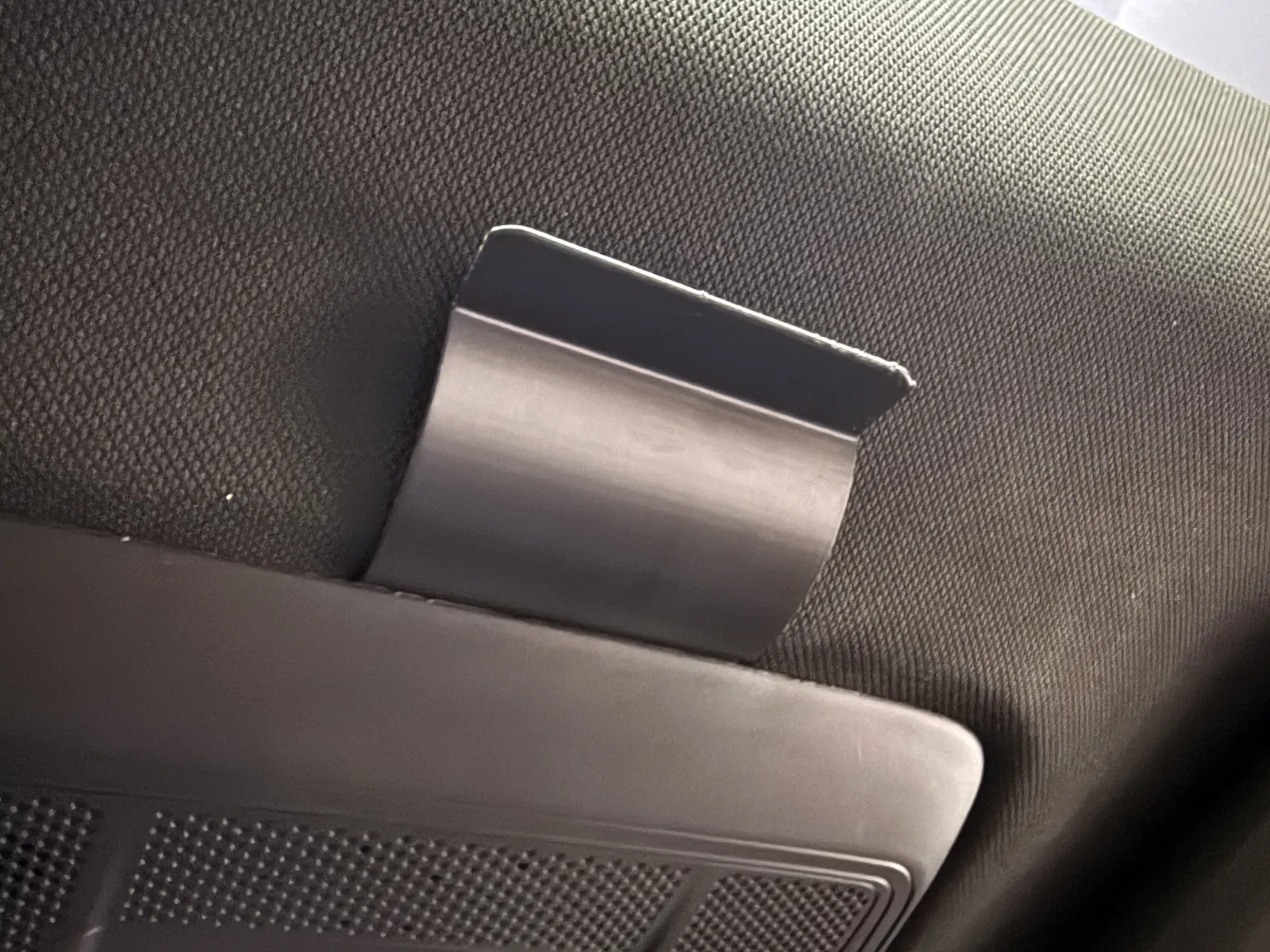 Cách lắp cũng dễ: ấn vào phần giữa của headliner, đưa ngàm này vào, móc vào headliner rồi kéo ngược về phía sau xe. Tháo ra thì làm ngược lại.