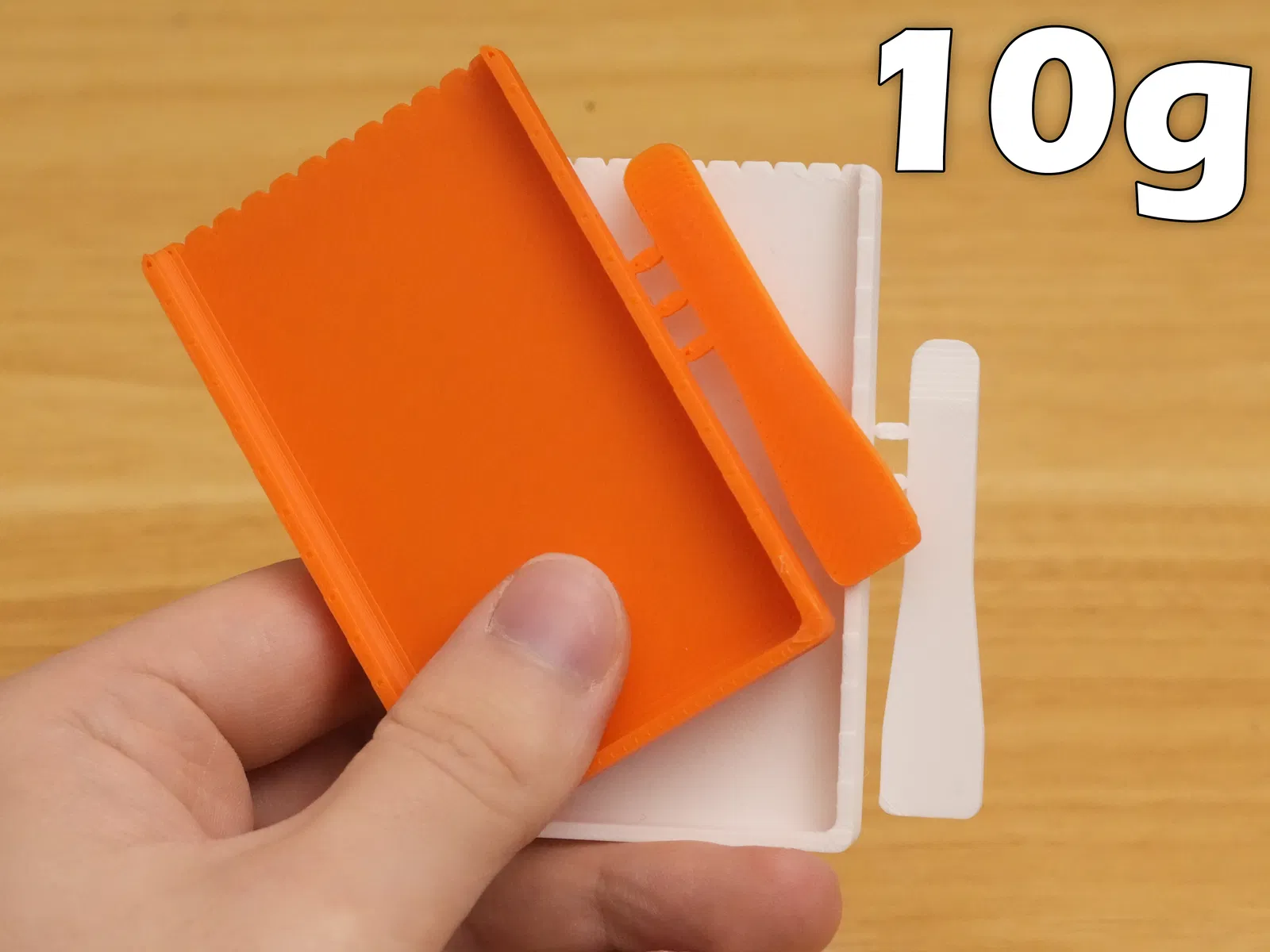 Bộ khay trộn nhỏ gọn cho epoxy resin 2 thành phần, chỉ tốn ~10g filament. Spatula bo theo góc khay giúp trộn đều, tránh đọng resin ở góc; đầu răng cưa hỗ trợ quét đúng lượng. Có thể scale trong slicer, khuyến nghị in PLA.