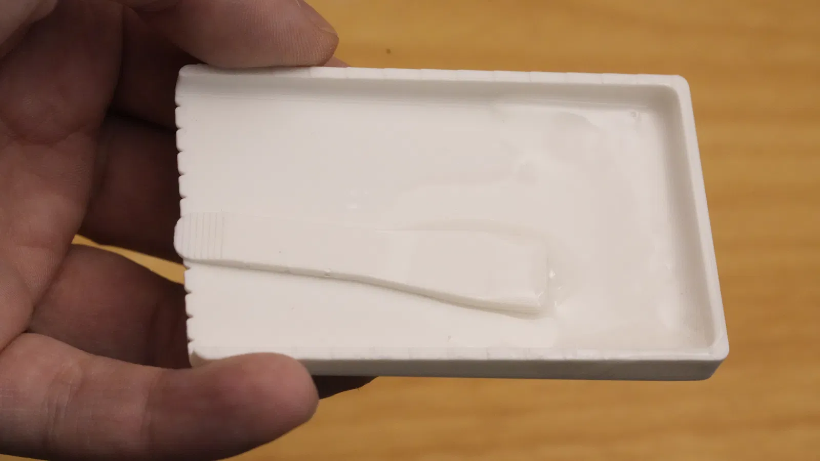 - bán kính của spatula khớp với bán kính bên trong khay, giúp tránh tình trạng resin chưa trộn bị kẹt ở các góc