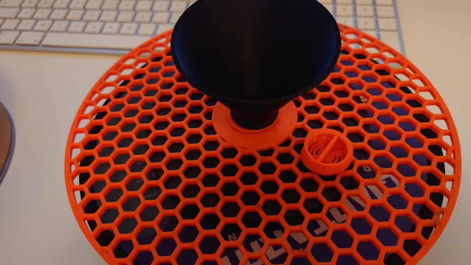 Phễu hỗ trợ đổ silica gel vào Hydra - Universal Spool Adapter nhanh và gọn. Thiết kế đặt lên adapter khít, có gờ giữ cố định nên không cần cầm tay khi đổ. In theo hướng đã set, không cần supports.