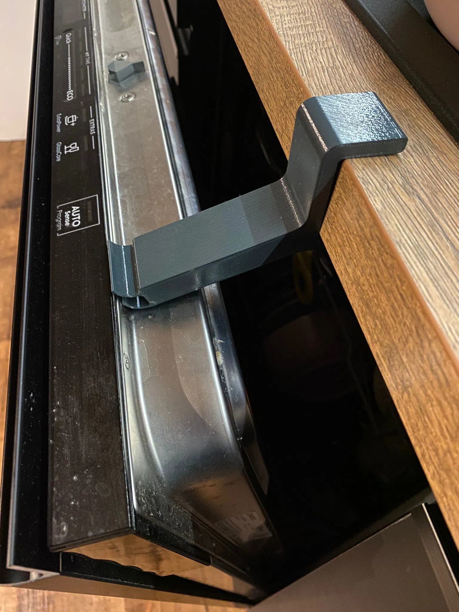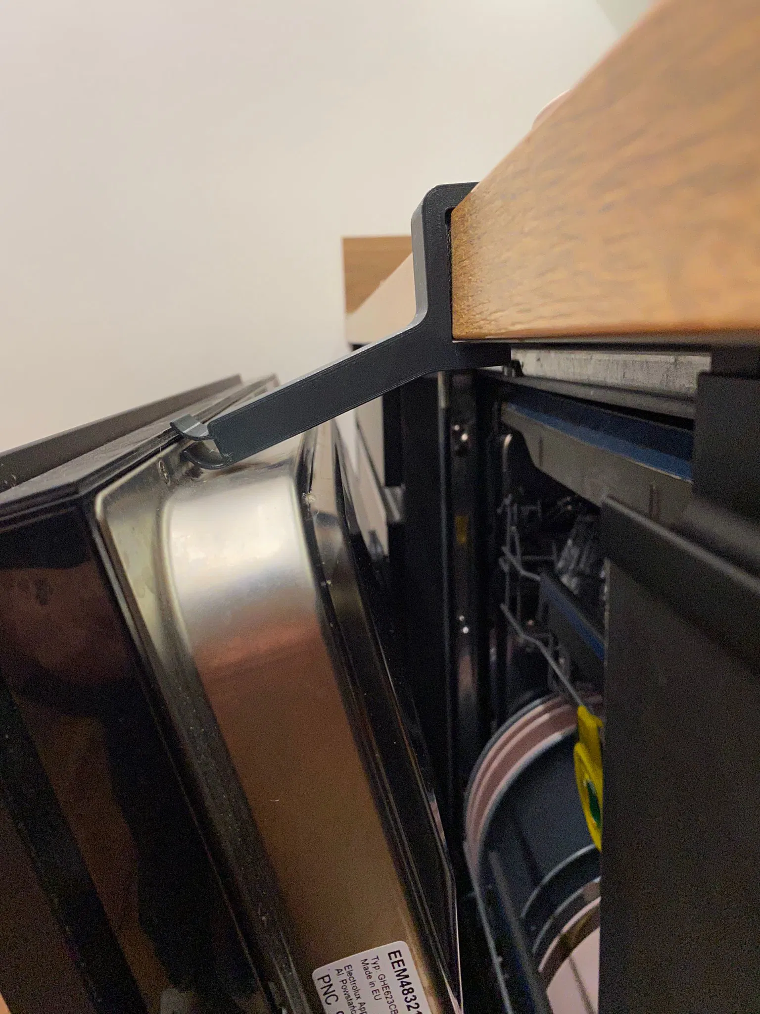 Miếng chêm Dishwasher Spacer giúp giữ cửa máy rửa chén hé mở để thoát hơi, hạn chế hơi nóng phả vào mép mặt bàn. Thiết kế cho worktop dày 28 mm và 38 mm; in PETG, không cần supports.