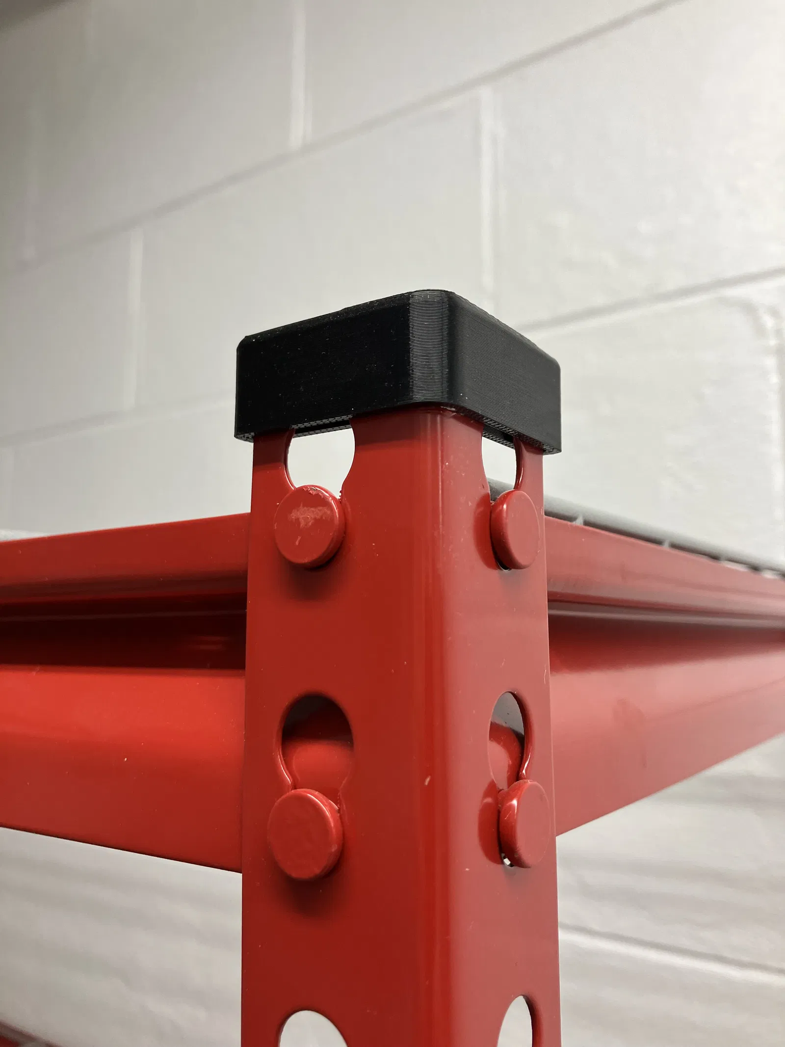Nắp chụp đầu kệ kim loại Husky; có thể hợp với kệ hãng khác nếu mỗi “chân” 30mm. In tốt bằng PETG/TPU, khuyên dùng TPU để dẻo và bám hơn. Đáy có flange giúp phân tán lực, tăng độ đỡ.