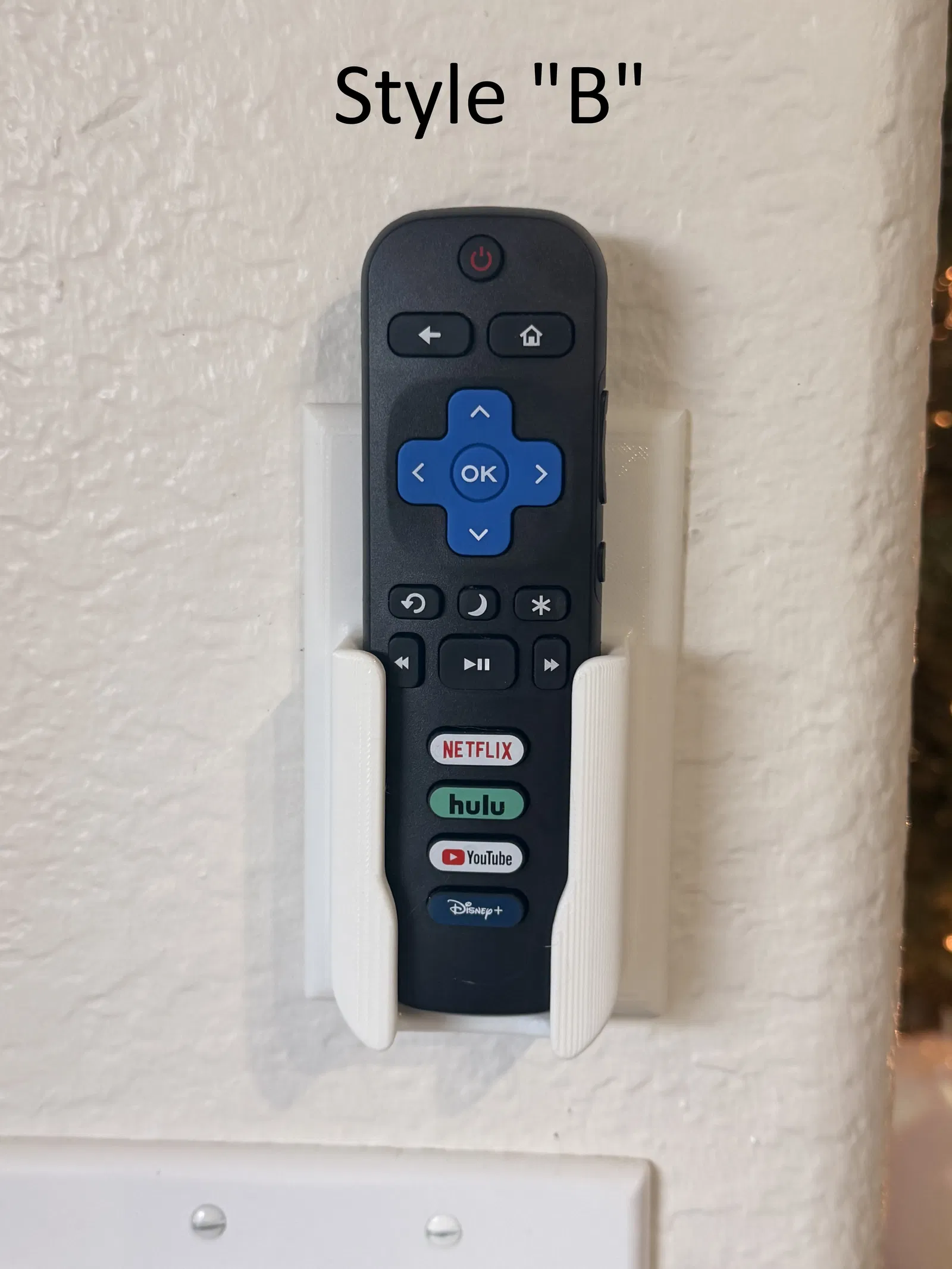 Đây là phiên bản cập nhật của mẫu Roku Remote Wall Plate Holder của mình! Nó hỗ trợ 3 kiểu remote Roku khác nhau, có 3 cỡ mặt plate khác nhau, và giờ có thêm lựa chọn plate 1-gang hoặc 2-gang có khoét chỗ cho công tắc đèn!