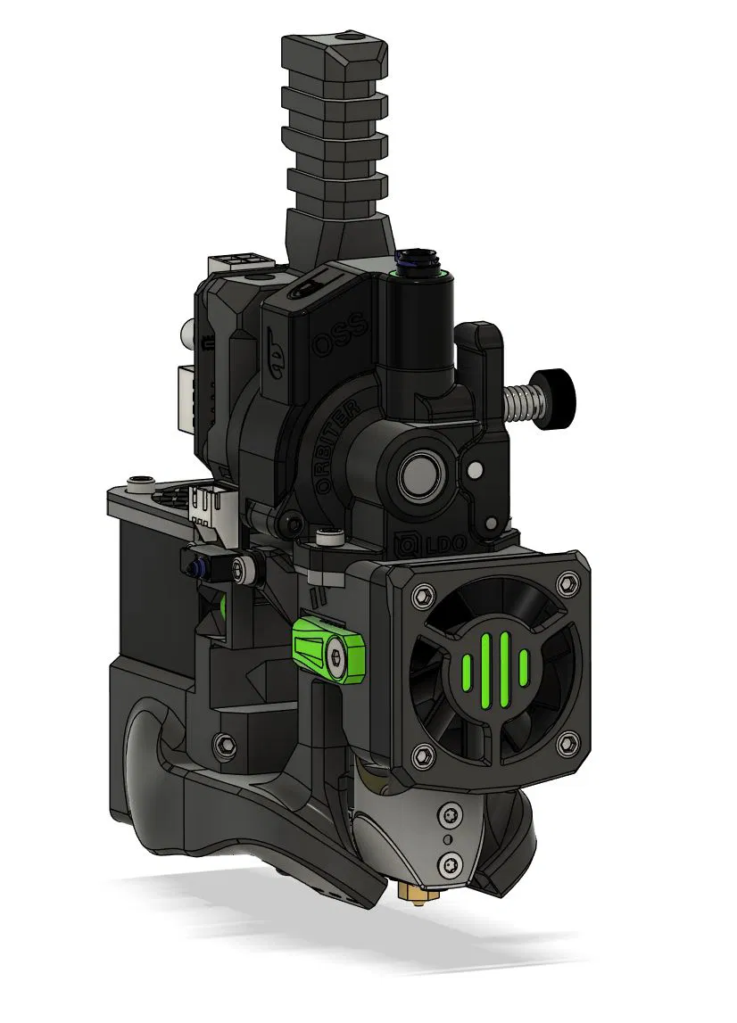 Ốp quạt (fan shroud) được cải tiến đáng kể từ V-Core 4.1 IDEX đã được chỉnh sửa để gắn lên toolhead của V-Core 4.0.