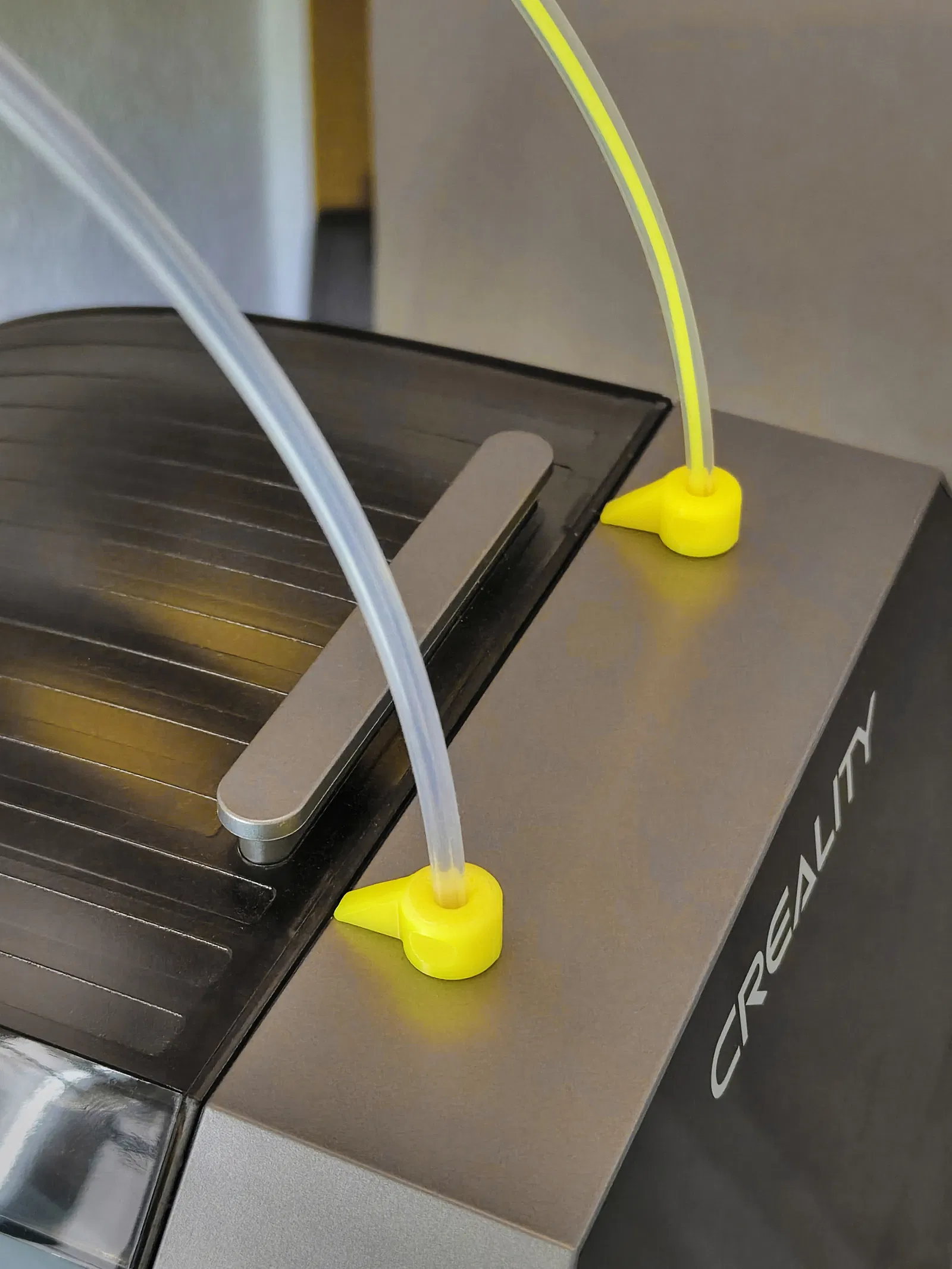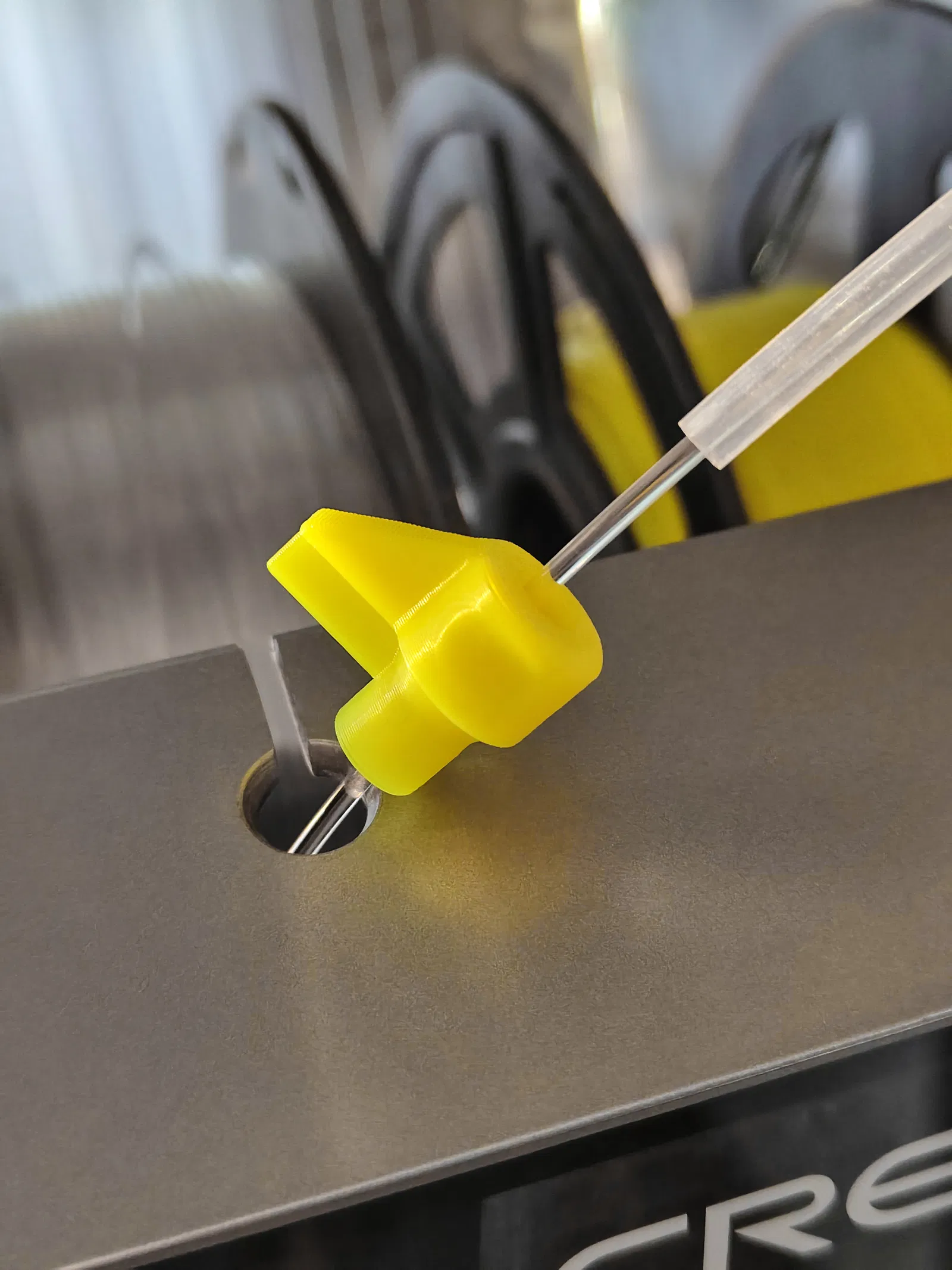 Filament Outlet thân thiện cho Space Pi Dryer: chỉ cần cắt khe mỏng 2mm trên nắp và gắn outlet vào. Thiết kế lỗ PTFE và insert hơi côn giúp lắp khít, chắc chắn. Có bản cập nhật thêm khe nhỏ để linh hoạt hơn.