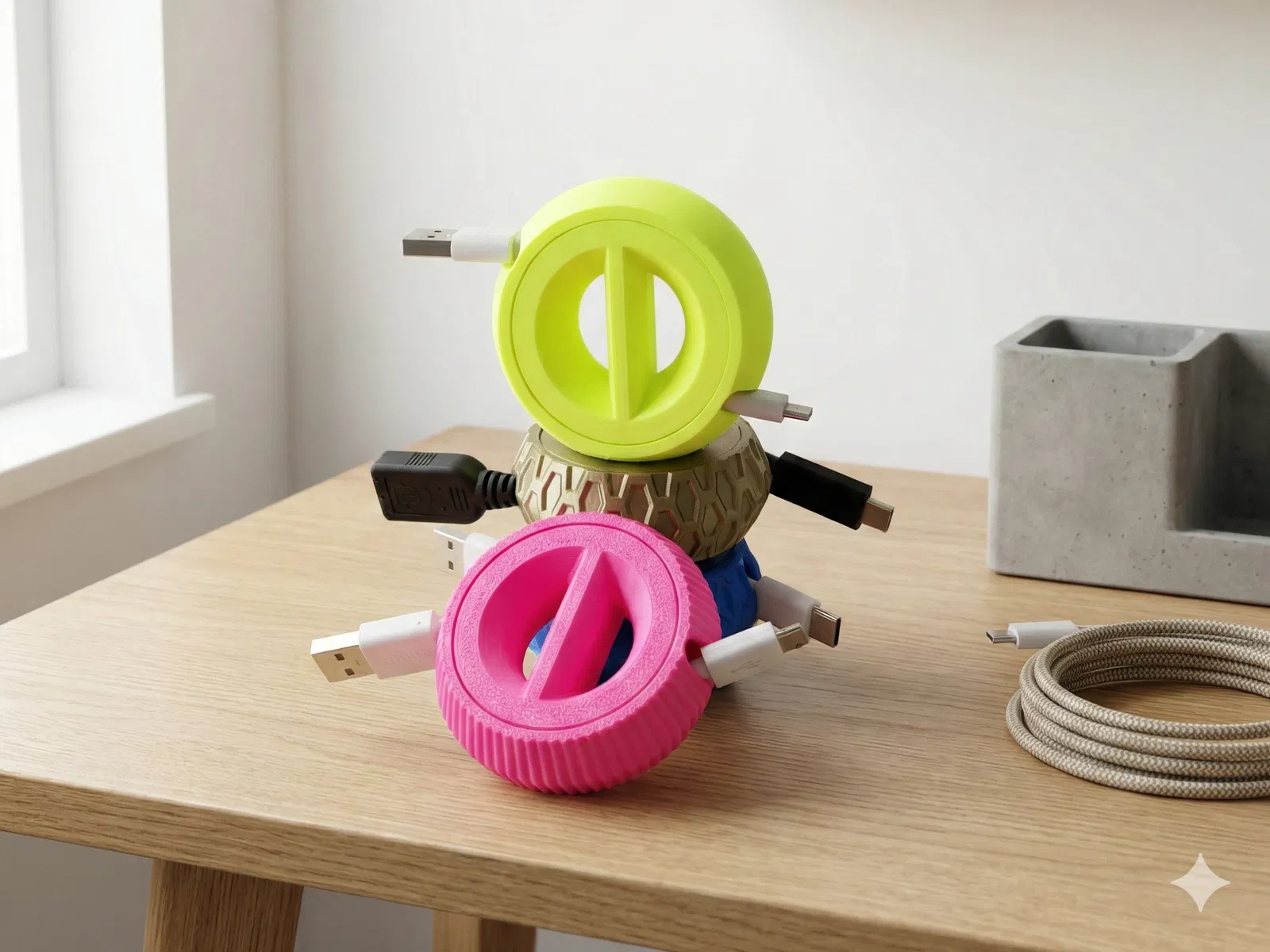 Tạm biệt dây nhợ rối tung và mặt bàn bừa bộn. Cable Hero sinh ra để “cứu” màn quản lý cáp của bạn! Đây là thiết kế Print-in-Place hoàn chỉnh, nghĩa là cơ cấu xoay được in ra là đã lắp sẵn. Không cần ốc vít, không cần keo, cũng không phải bẻ lắp từng phần—chỉ việc in và cuốn.