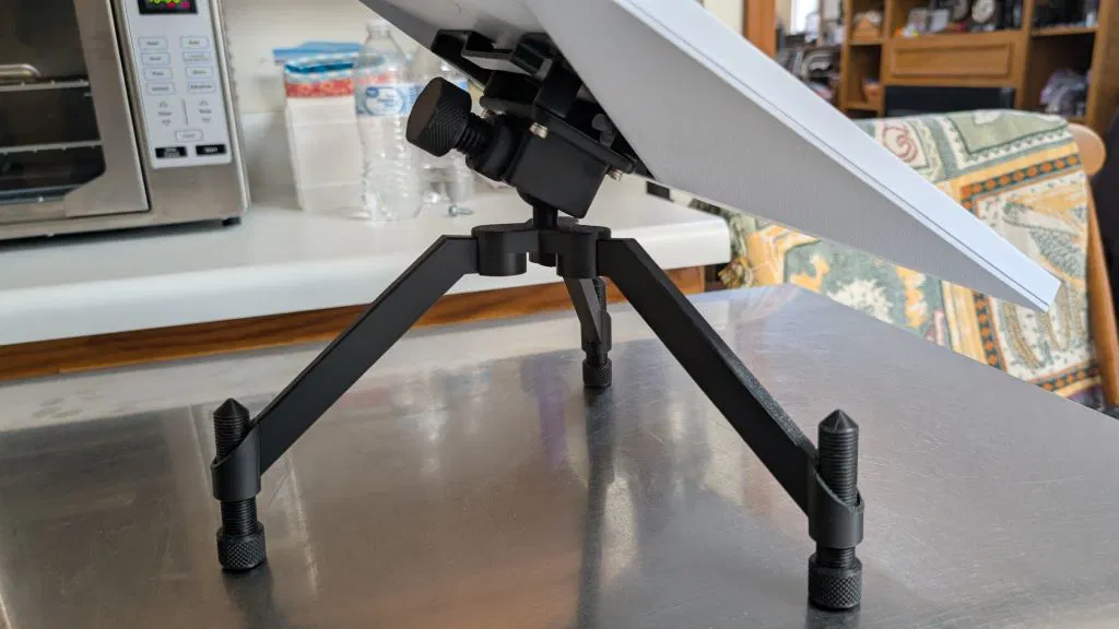 Tripod nhỏ kèm ball mount để dùng với Starlink Mini Mount Insert, giúp nâng Starlink Mini khỏi mặt đất. Hỗ trợ chân đáy phẳng hoặc peg nhọn; ball clamp dùng ốc M4, tâm tripod có ren M5; có file Fusion 360 và .STEP.
