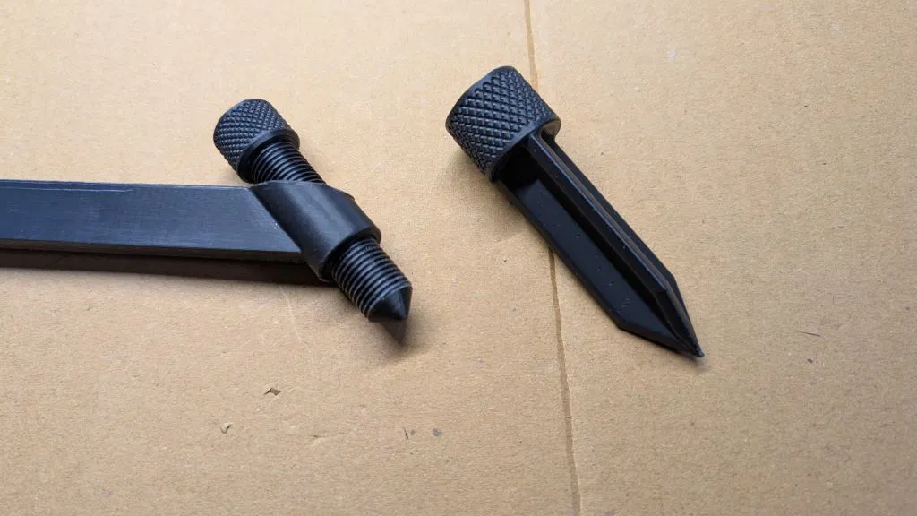 Tôi có thêm một thành phần mẫu nữa tên là "stakehead". Đây là phần nối dạng vặn vào cho component "screwpeg". Stakehead dùng để cắm xuống đất mềm, giúp tăng độ ổn định mà không có nguy cơ làm hư ren của screwpeg. File nguồn Fusion 360 & file .STEP đã được cập nhật với phần bổ sung này