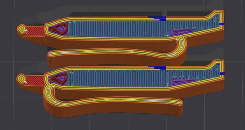 * Bridge Direction: 90 (cái này rất quan trọng, bạn kiểm tra trong slicer và đảm bảo lớp bridge đầu tiên vuông góc với buồng âm như trong hình phía trên – có thể bạn sẽ cần chỉnh tuỳ theo hướng đặt/orientation và slicer)
