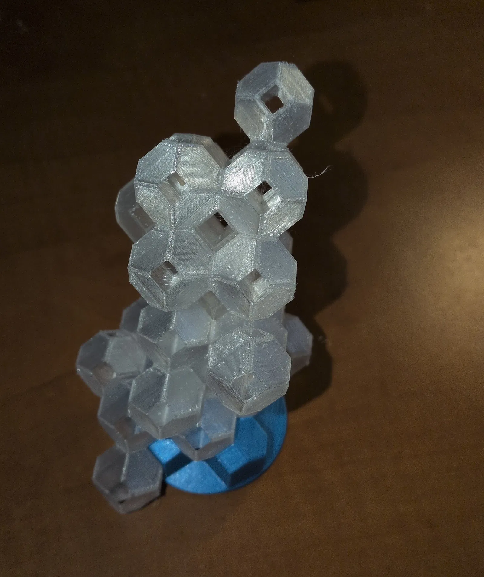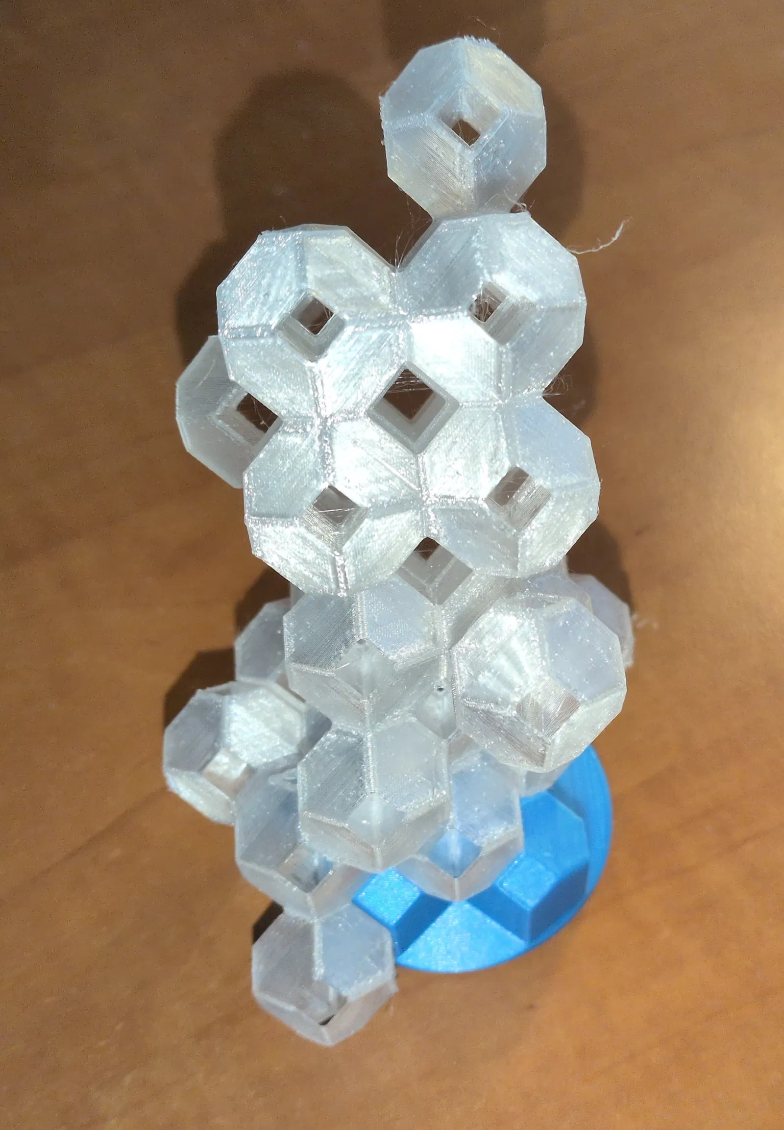 Bạn có thể nhìn xuyên qua; nếu in bằng filament trong suốt thì có thể còn nhìn xuyên được một phần qua các mặt bên nữa.