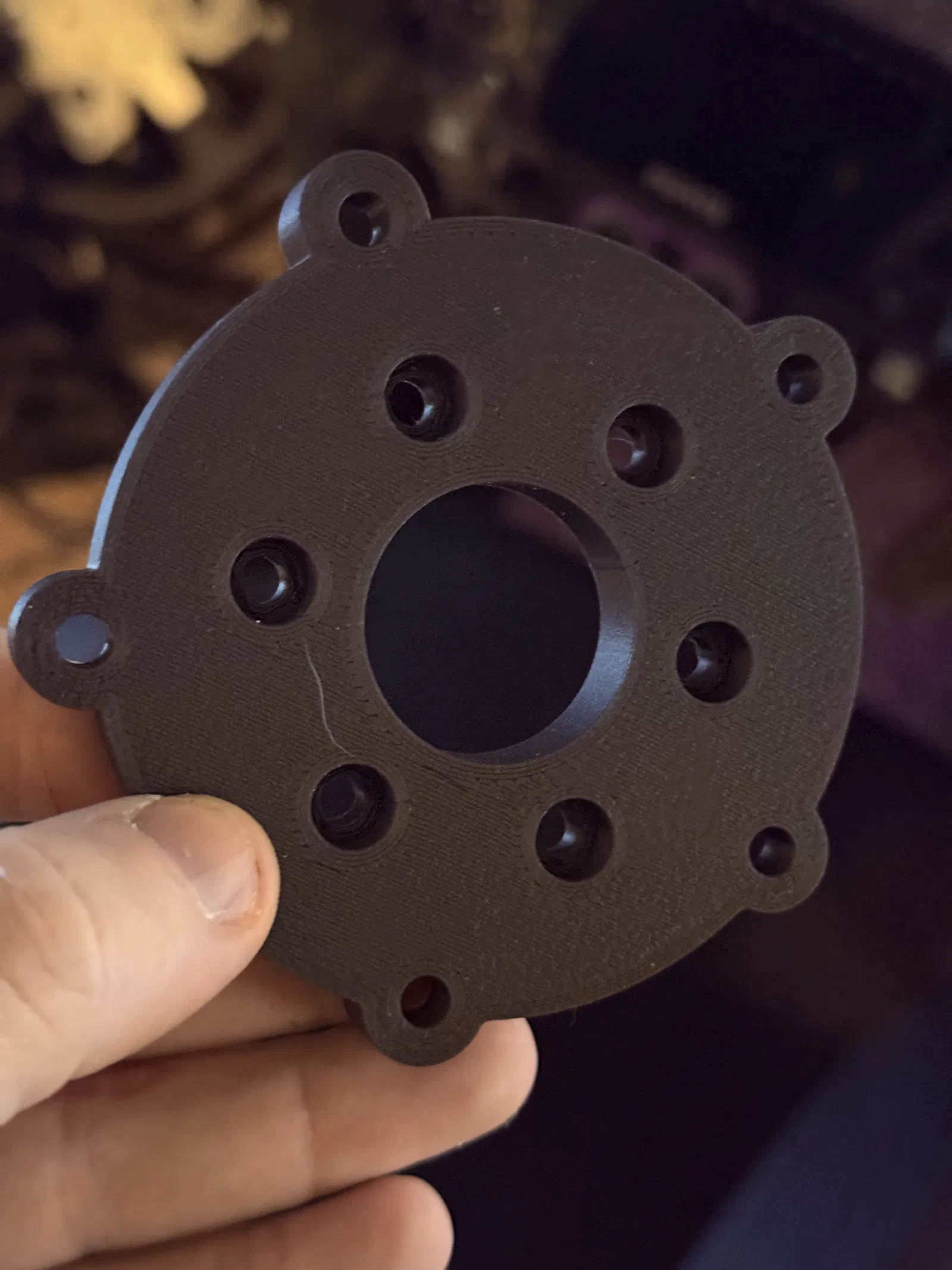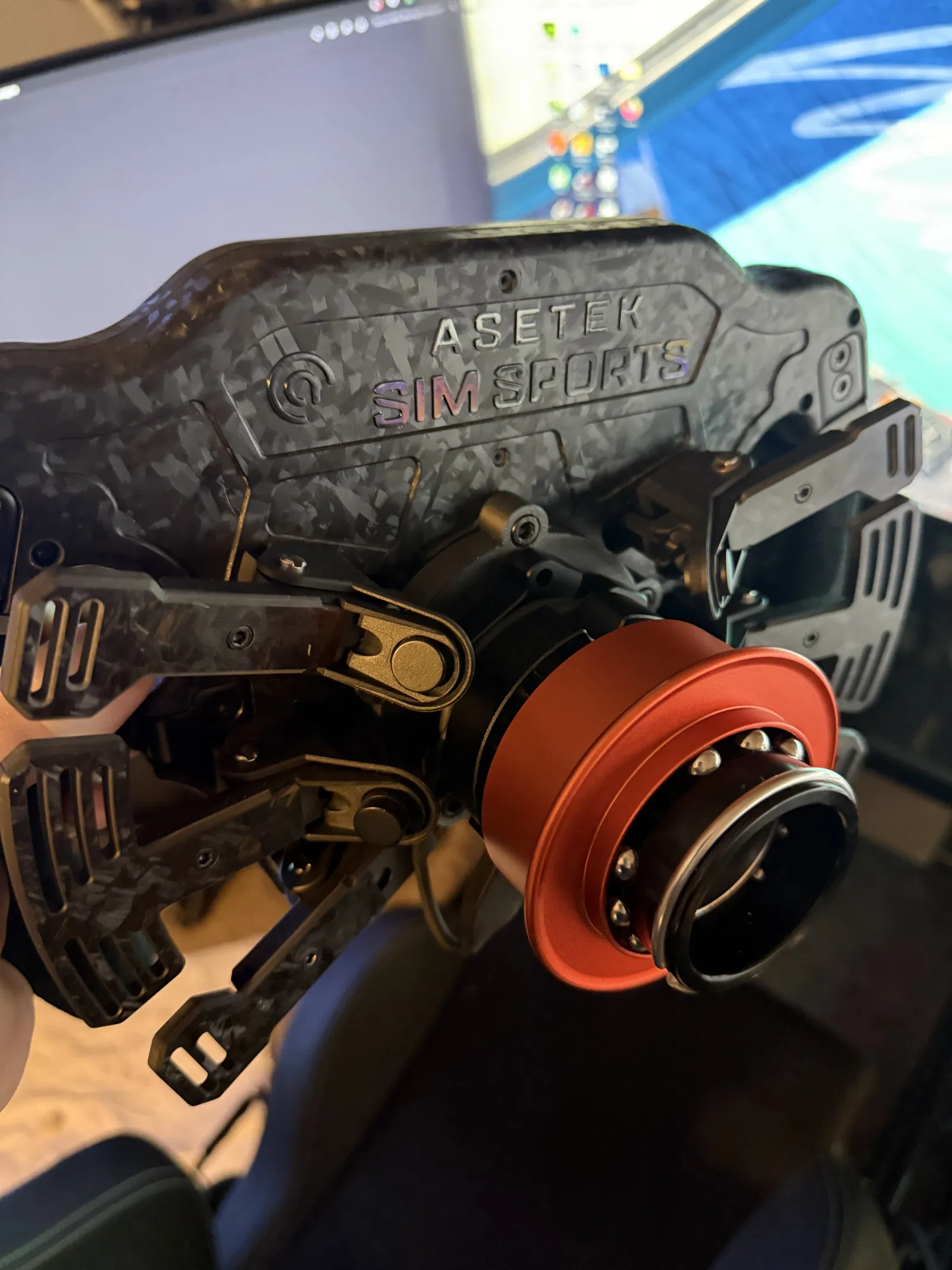 Đây là một adapter plate để gắn Asetek Formula Forte Pro qua các QR adapter khác cho những wheel base khác. Mục đích là giảm phần chiều dài trục bị cộng thêm khi xài đủ loại adapter của Asetek chồng lên nhau: trên cái factory Asetek Mount, rồi lại trên Simagic QR-A. Nó cộng thêm tầm 10–11" chiều dài trục và làm mình set up cái rig bị phá hỏng hoàn toàn. Nên mình bỏ hết mấy adapter đó và tháo luôn OG mount, chỉ chừa lại Simagic QR-A, rồi bắt cái plate này vô. Thiết kế tối ưu riêng cho Simagic QR-A, nhưng cũng sẽ hợp với các universal adapter khác.