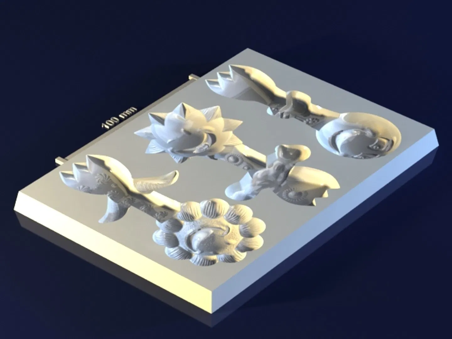 Mẫu 3D chất lượng cao của khuôn Forks dùng cho làm thủ công xà phòng, chocolate và nến. Đã được kiểm tra và đã có khuôn thực tế sản xuất từ model này. File sẵn sàng để 3D print.