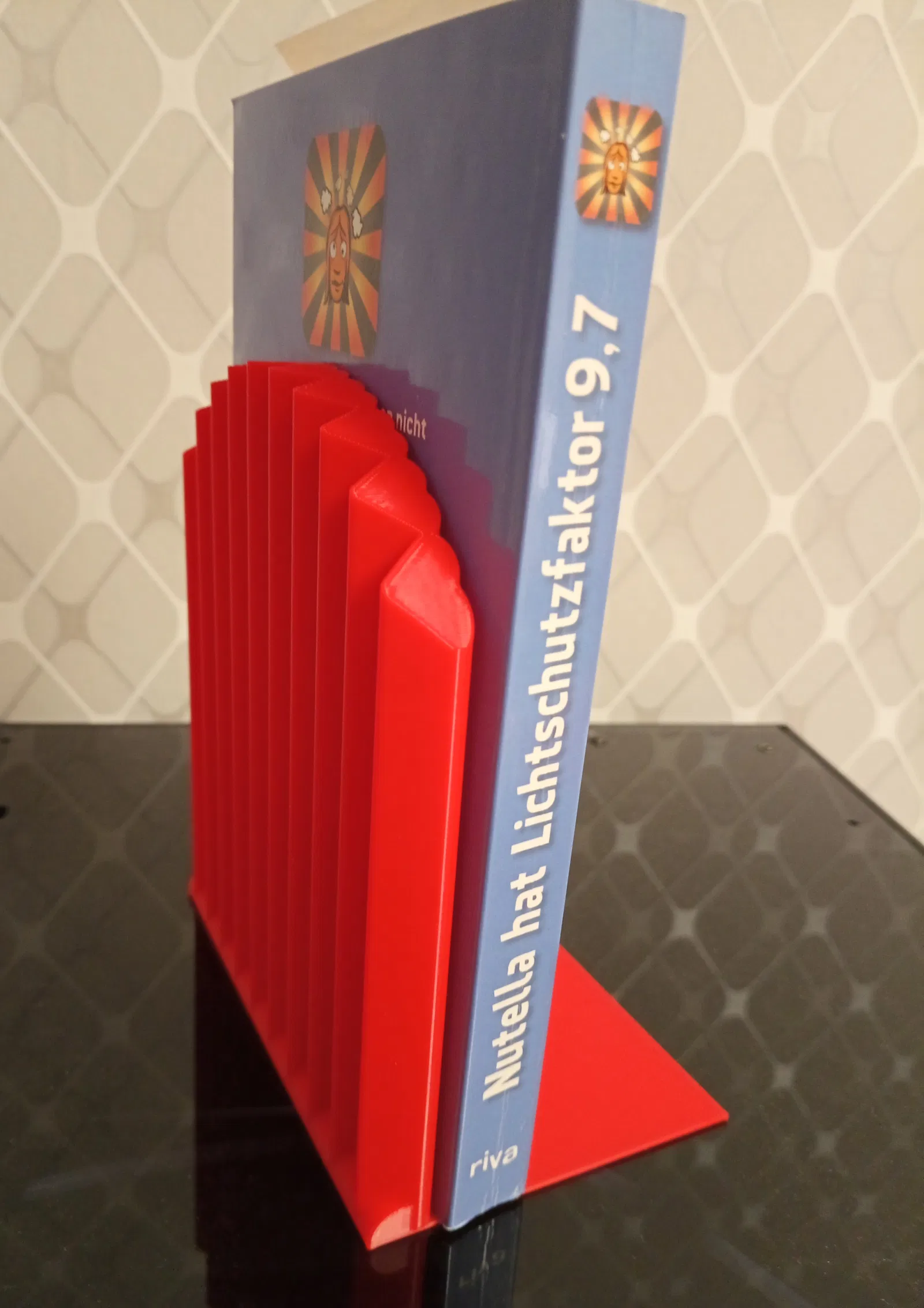 Mẫu chặn sách (bookend/book holder) đơn giản, phần dựng đứng là các cột hình trái tim nên rất hợp làm quà Valentine. Độ sâu 12cm dùng được cho cả sách lẫn DVD. In layer 0.2mm, nên dùng brim 6mm+.