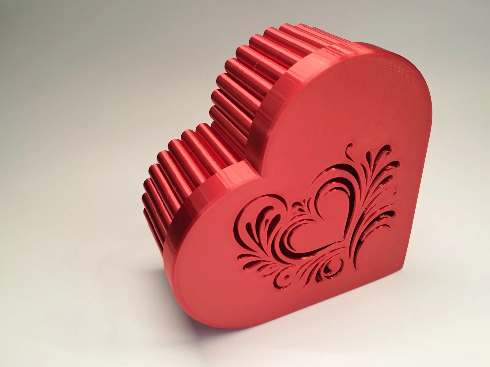 Hộp quà Valentine dễ thương để đựng quà và đồ ngọt. In PLA, layer 0,2 mm, 2 perimeters, infill 15%, không cần supports/brim. Có sẵn file 3MF, kèm STEP và link OnShape để bạn tùy chỉnh.
