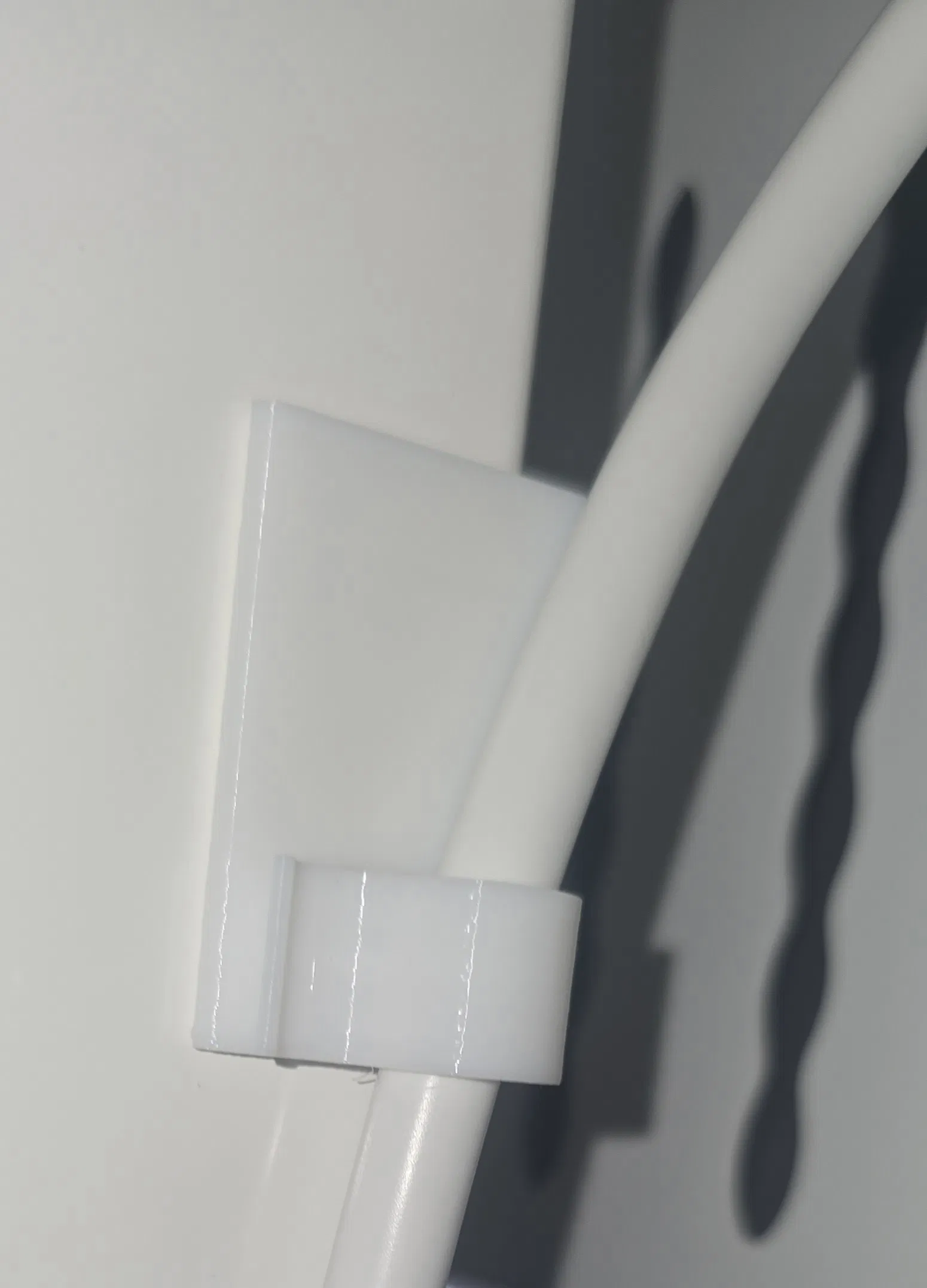 Kẹp dây đơn giản giúp đi dây gọn gàng dọc theo chân bàn đứng Flexispot, giữ dây theo góc 90°. Dán bằng băng keo hai mặt, bám chắc; hỗ trợ dây tối đa 10mm. Khuyến nghị in PETG để kẹp có độ đàn hồi.
