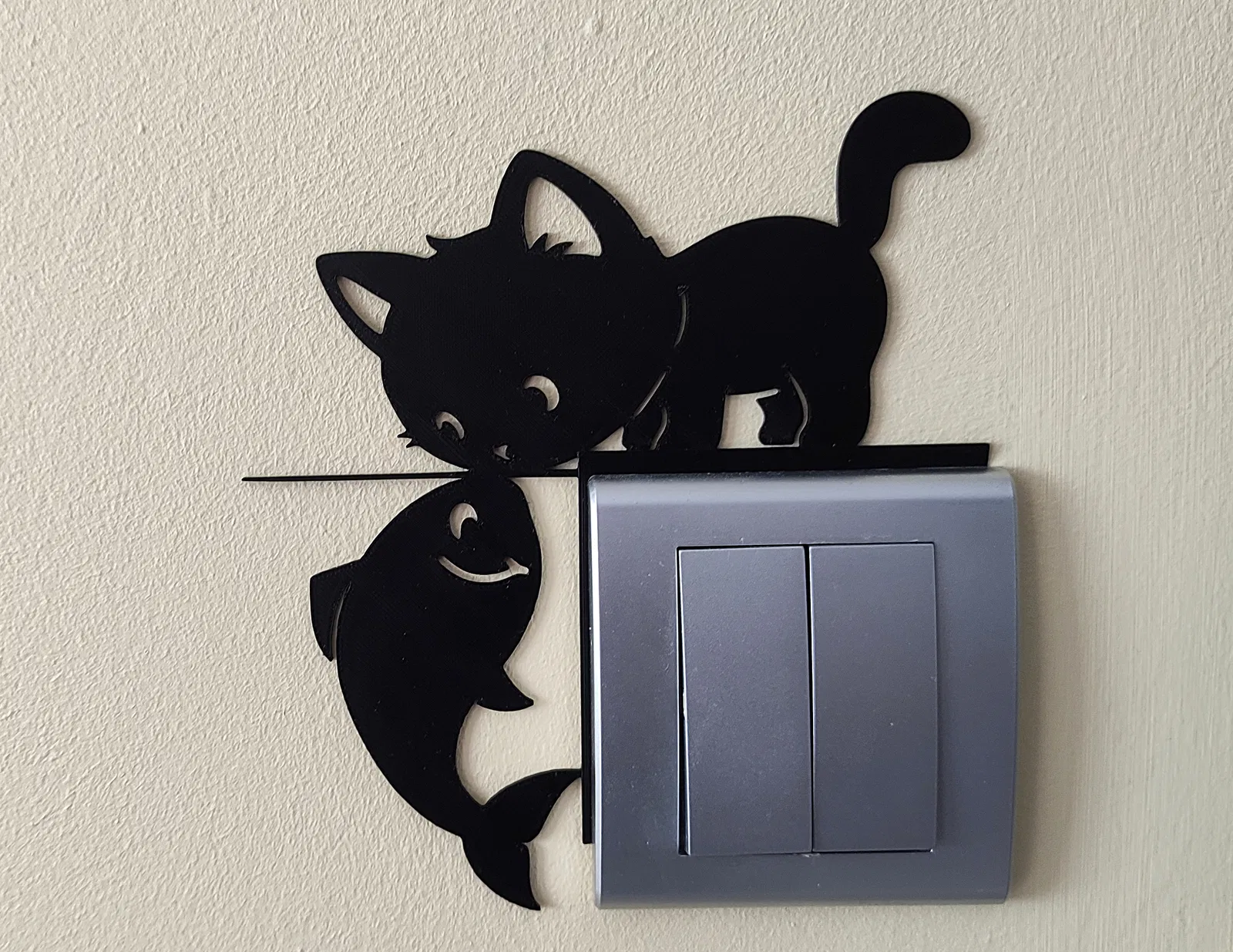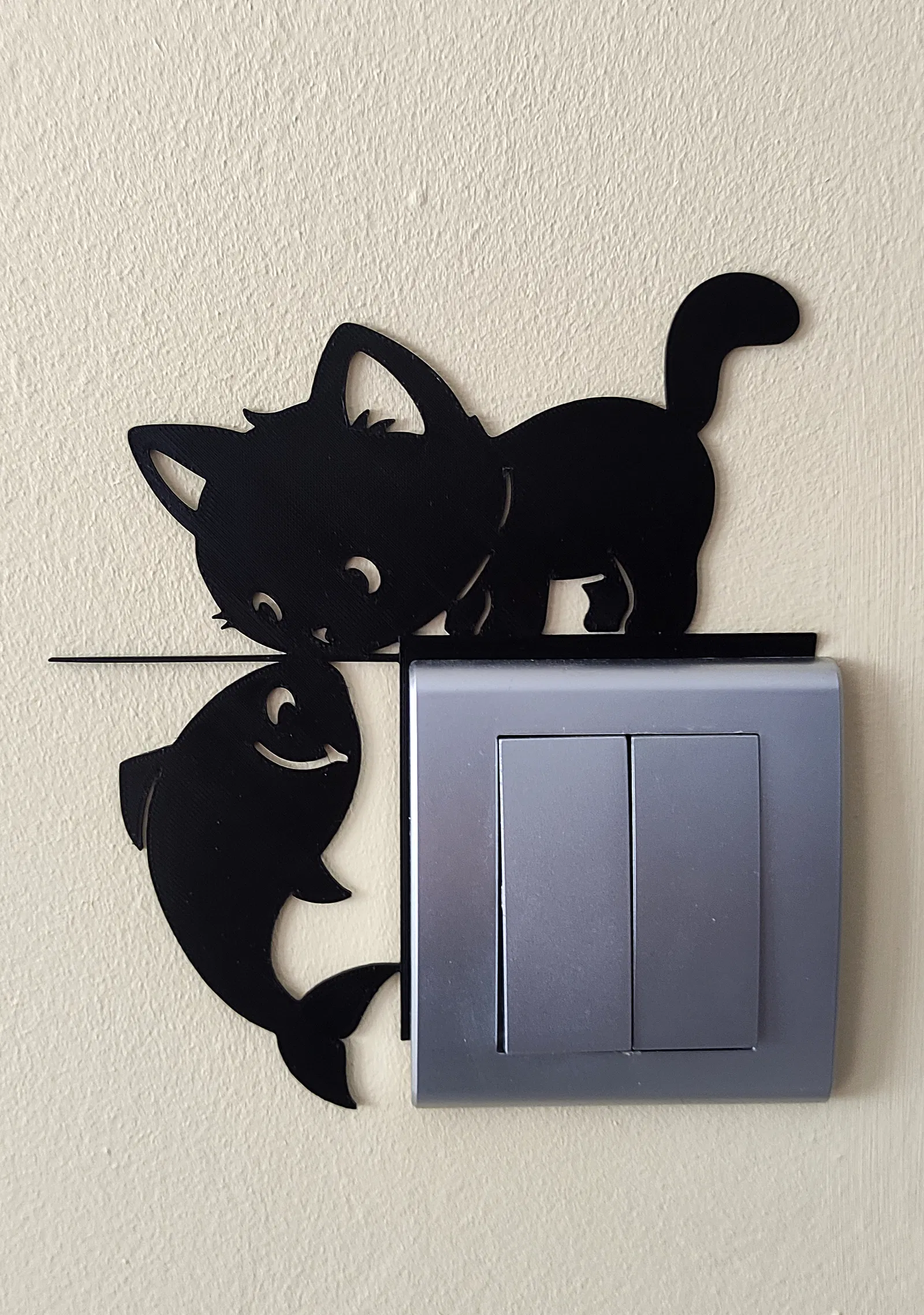 Mẫu trang trí công tắc đèn 3D hình Mèo 2, thiết kế ốp mỏng lắp kiểu press-fit kẹp giữa tường và khung công tắc. Không cần keo hay dụng cụ, tháo lắp dễ, in 3D ổn định và hợp nhiều màu.