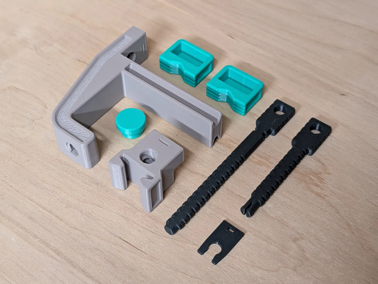 Ê-tô để bàn in 3D đã được tối ưu hướng in: 100% printable, không cần support. Thiết kế siêu cứng cáp, chịu tải 1 kg nhẹ nhàng. Có kèm file STEP phần ngàm (jaws) để bạn tự làm theo nhu cầu.