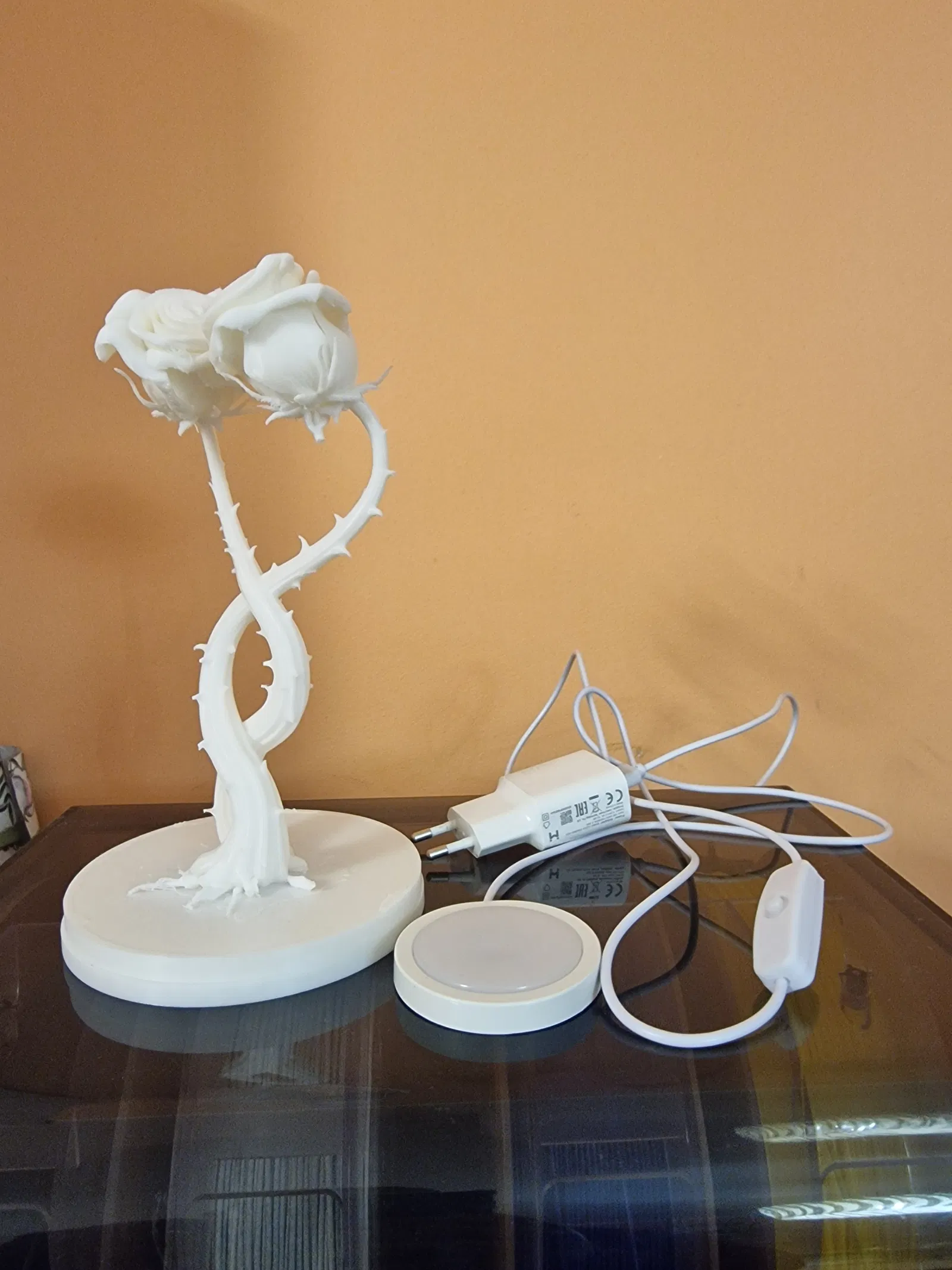 Một chiếc đèn nhỏ, tạo không khí, có hình hai bông hồng đan xen vào nhau—rất hợp cho dịp Valentine. Mẫu này cần supports. Mình in bằng eSUN PLA màu trắng, nhưng mình nghĩ dùng filament trong suốt sẽ đẹp hơn (tiếc là hiện tại mình chưa có). Bạn sẽ cần một đèn LED puck light có đường kính 60 mm và cao 10 mm. Mình mua một cái với giá gần như rẻ bèo trên một cửa hàng online. Mình không thiết kế phần ngàm/đế gắn cho đèn—vì khi đặt lamp lên trên thì cũng không cần thiết.