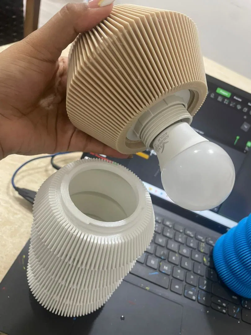 Mẫu đèn “LAMP / 4-piece lamp - Lampara 4 Piezas” với chiều cao H=30cm. Thiết kế gồm 4 phần lắp ghép lại thành một chiếc đèn hoàn chỉnh, phù hợp để in 3D và trang trí không gian.