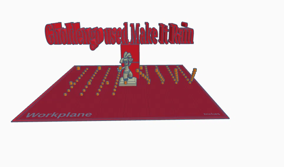 Mẫu “gholdengo used make it rain” được mình tự thiết kế hoàn toàn. Khi in nhớ bật supports để lên form ổn hơn; nếu bạn có máy in multi-color thì dùng sẽ đẹp và đúng hiệu ứng hơn.