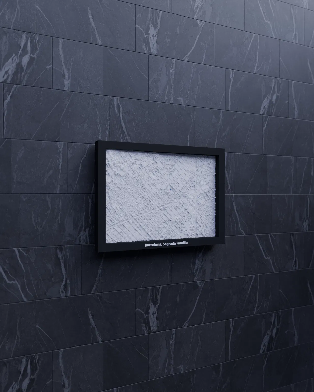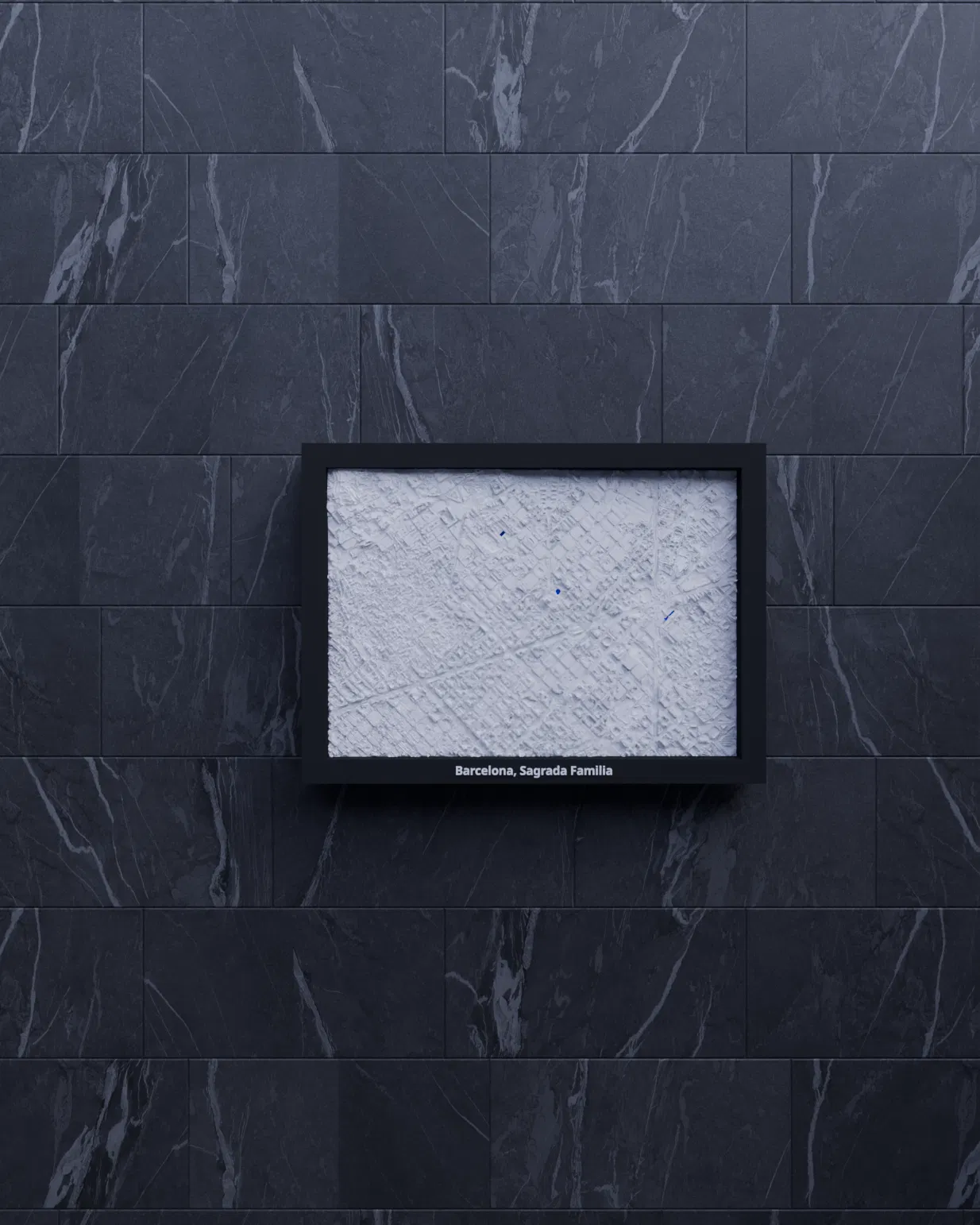 Mô hình thu nhỏ địa hình 3D tái hiện khu vực quanh Barcelona, Sagrada Familia (Spain), dựng từ dữ liệu địa lý để thể hiện terrain chân thực. Có nhiều frame kèm lỗ treo, hỗ trợ in multicolor hoặc single color.