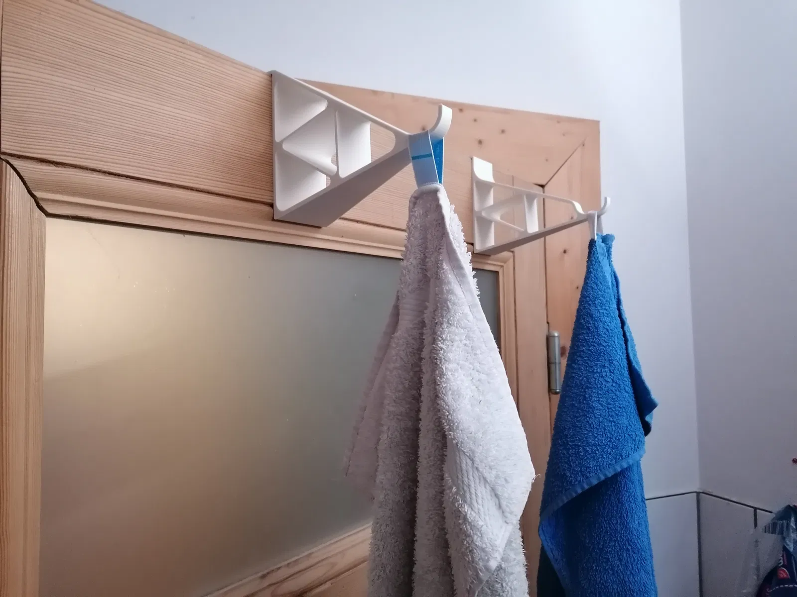 Mình không muốn khăn tắm bị cọ lên cửa nhà tắm, nên mình làm một cái hook có chiều dài 80–200mm (parametric trong Fusion360).