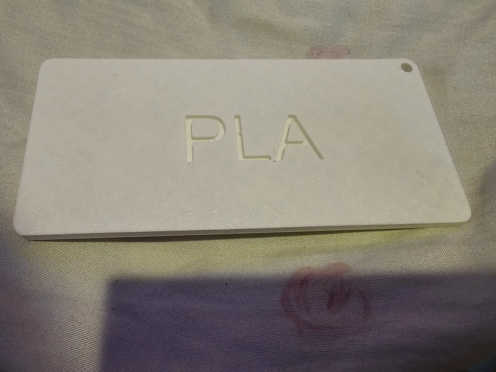 Bản in này được thiết kế để kiểm tra xem chữ có lên đẹp với loại filament cụ thể hay không, đồng thời hiển thị công thức hoá học của loại nhựa mà nó được làm từ đó.