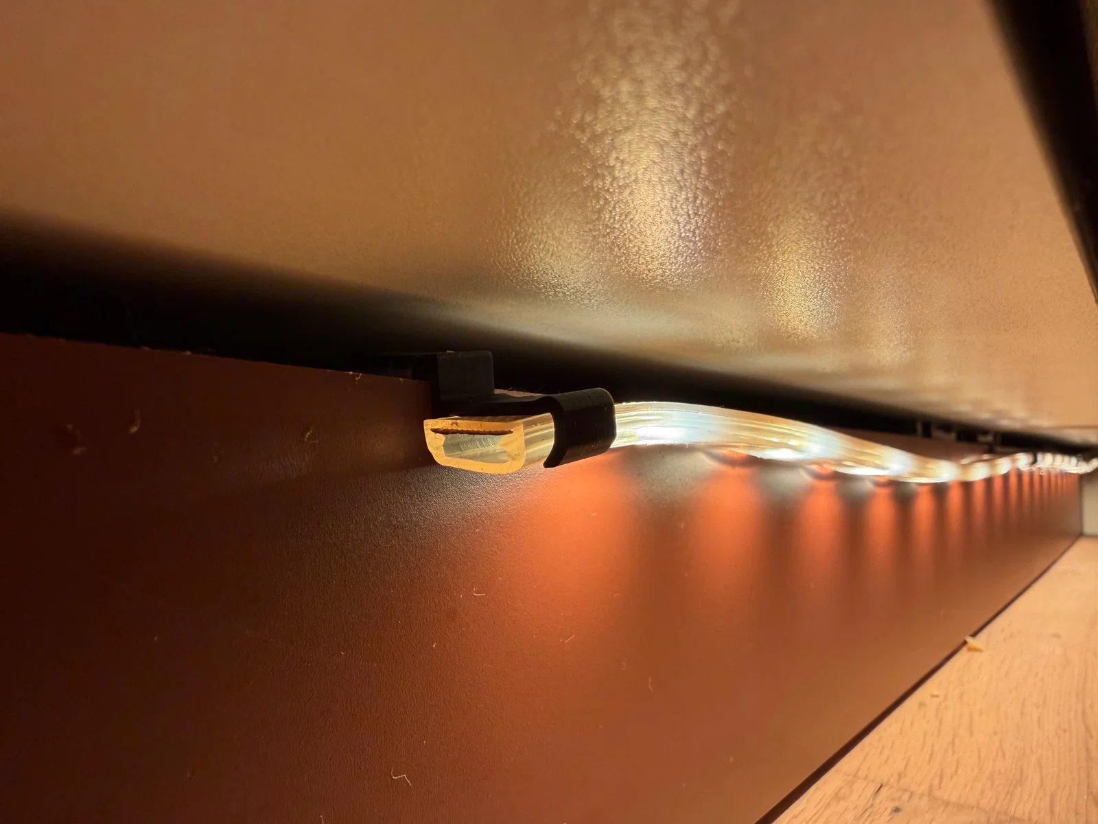 Phiên bản giá đỡ led strip cho viền 13 mm, gài trực tiếp lên tấm ván gỗ/viền bếp để cố định dải đèn mà không cần khoan hay đóng đinh. Phù hợp khi muốn lắp nhanh và không làm hư bề mặt.