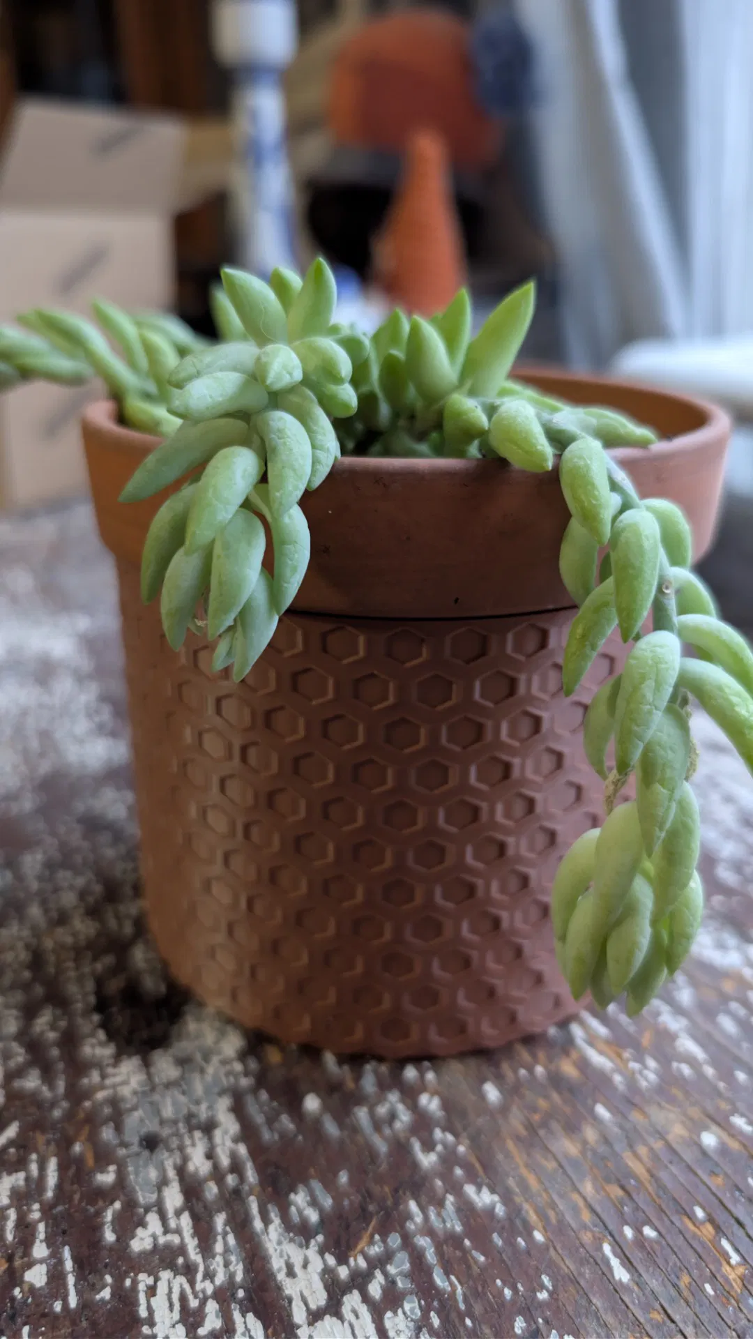 Đây là một phiên bản mới mẻ của chậu cây phong cách modern, nổi bật với bề mặt honeycomb (hexagon) sắc nét. Họa tiết hình học bắt sáng rất đẹp, hợp cực với không gian nội thất hiện đại hoặc kiểu công nghệ.