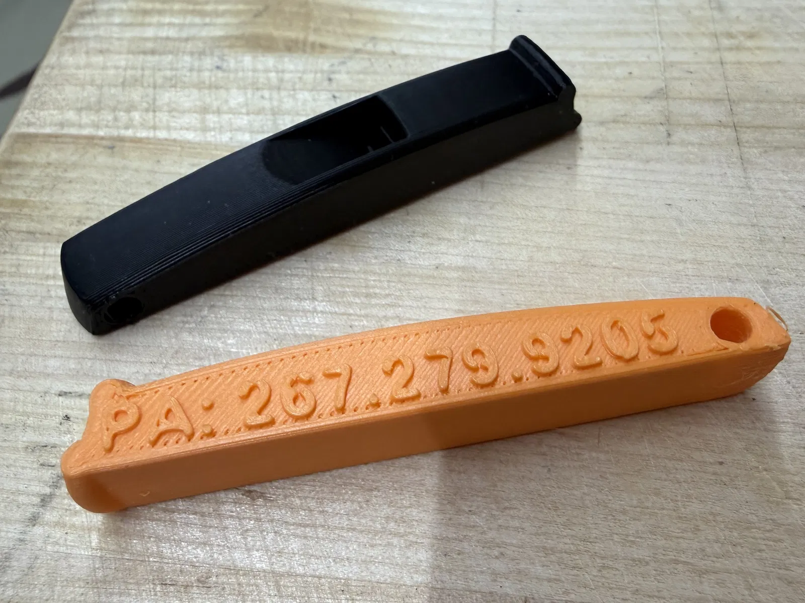 Bản remix của còi F ICE cho Philadelphia, PA: thêm số điện thoại Rapid Response Team tại Philly (Montgomery County: 267-279-9205 / https:/). Giữ nguyên kích thước, tập trung in ổn định trên PLA/PETG với FDM.