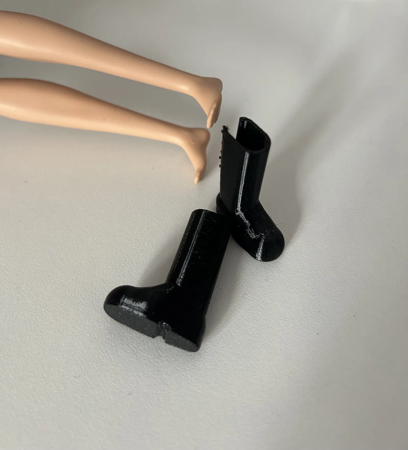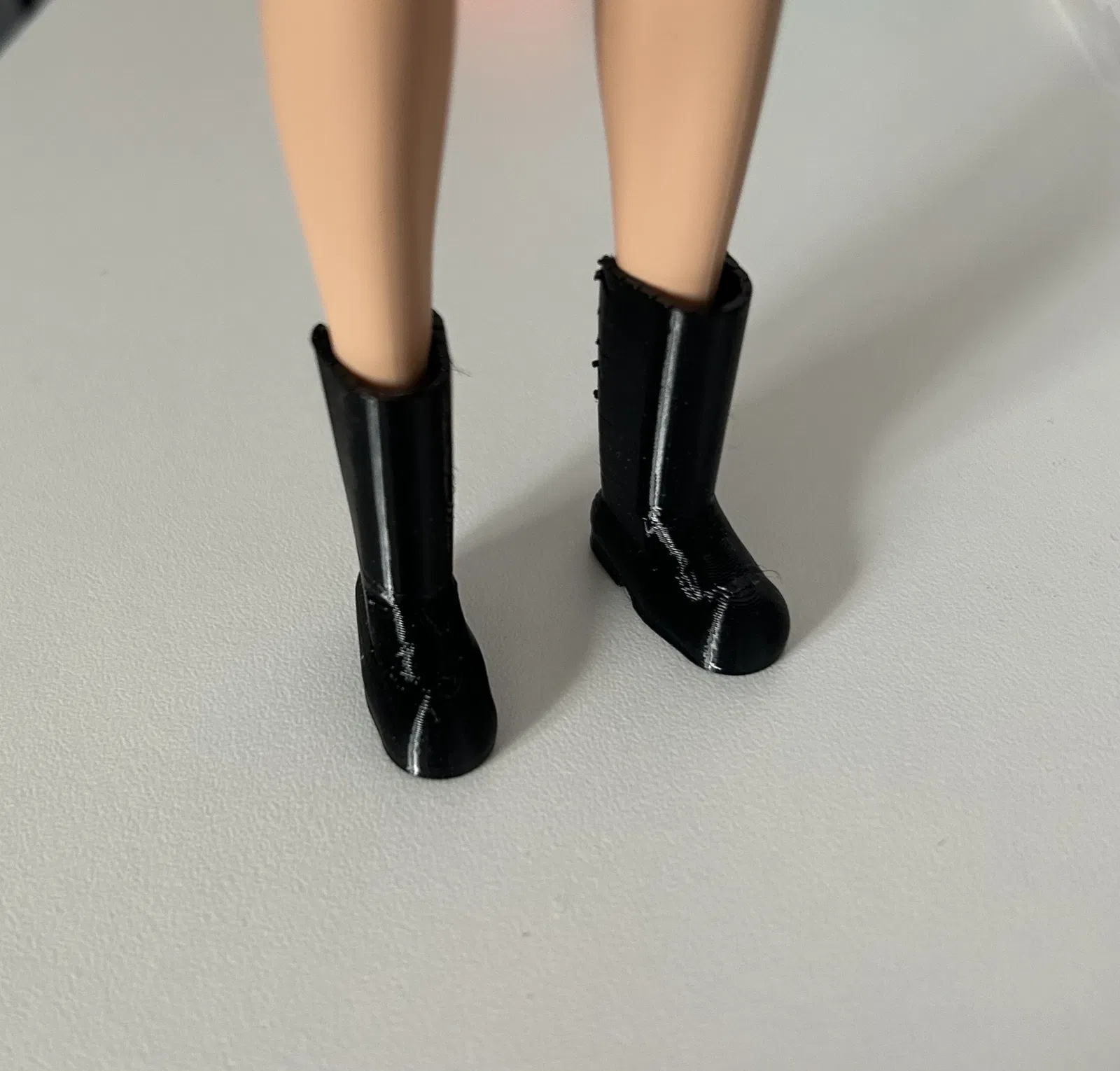 Đây là đôi bốt dành cho búp bê Barbie chân bằng (flat foot). Không vừa với phiên bản Barbie tiêu chuẩn đi giày cao gót. Nên in bằng vật liệu dẻo như TPU 95A.