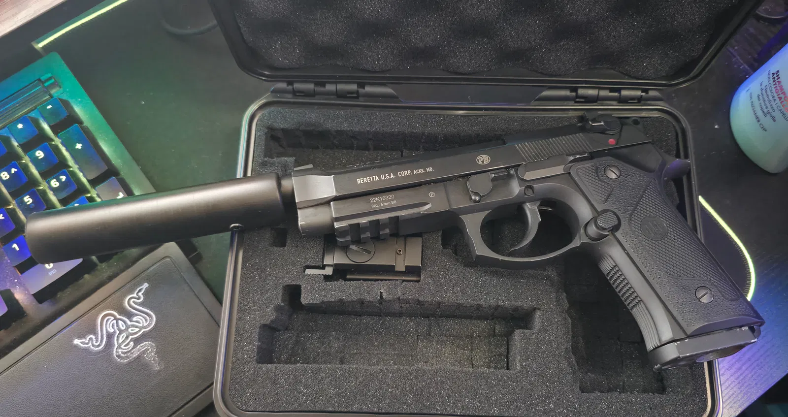 Silenziatore cho Beretta M9A3 được thiết kế tách làm 2 phần để dễ in và lắp ráp. Cần thêm 1 con vít đầu trụ M4 dài 7mm để hoàn thiện.