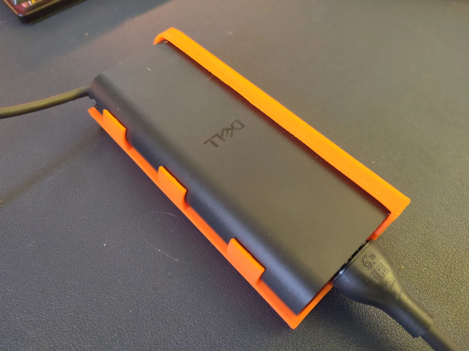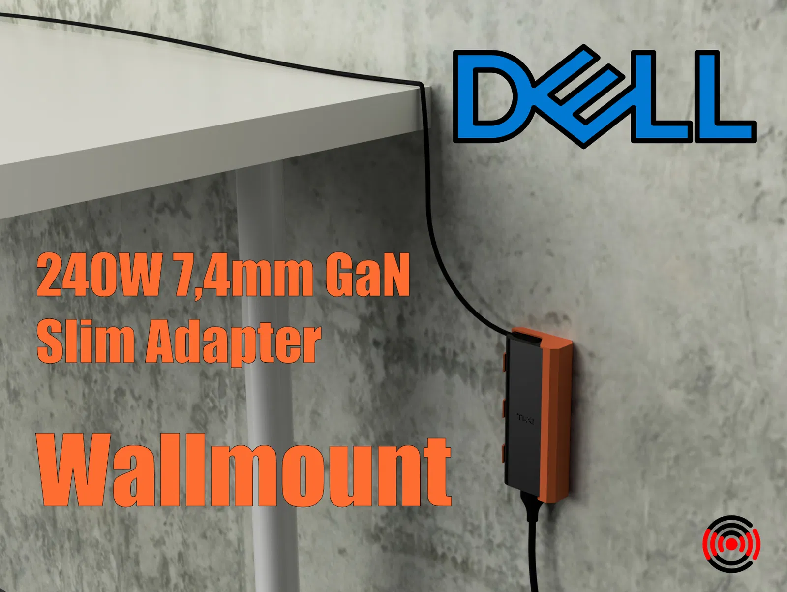 Mẫu giá đỡ cho sạc Dell 240W GaN Slim đầu 7,4mm, cho phép lắp theo chiều dọc hoặc ngang (wall mount/giá treo). Thiết kế in 3D không cần support, gọn gàng và chắc chắn.